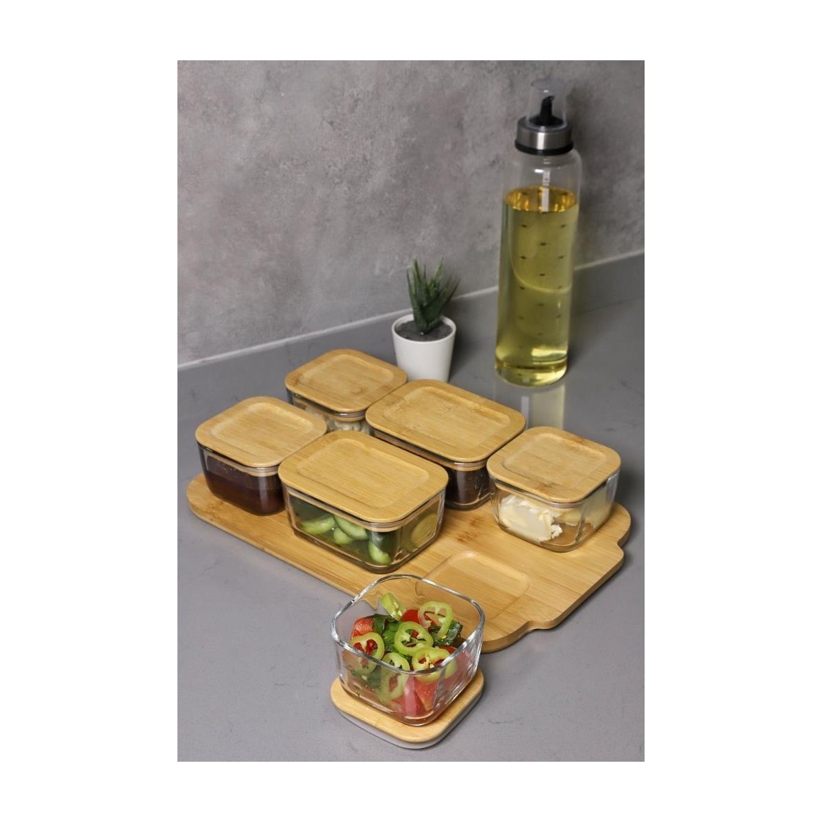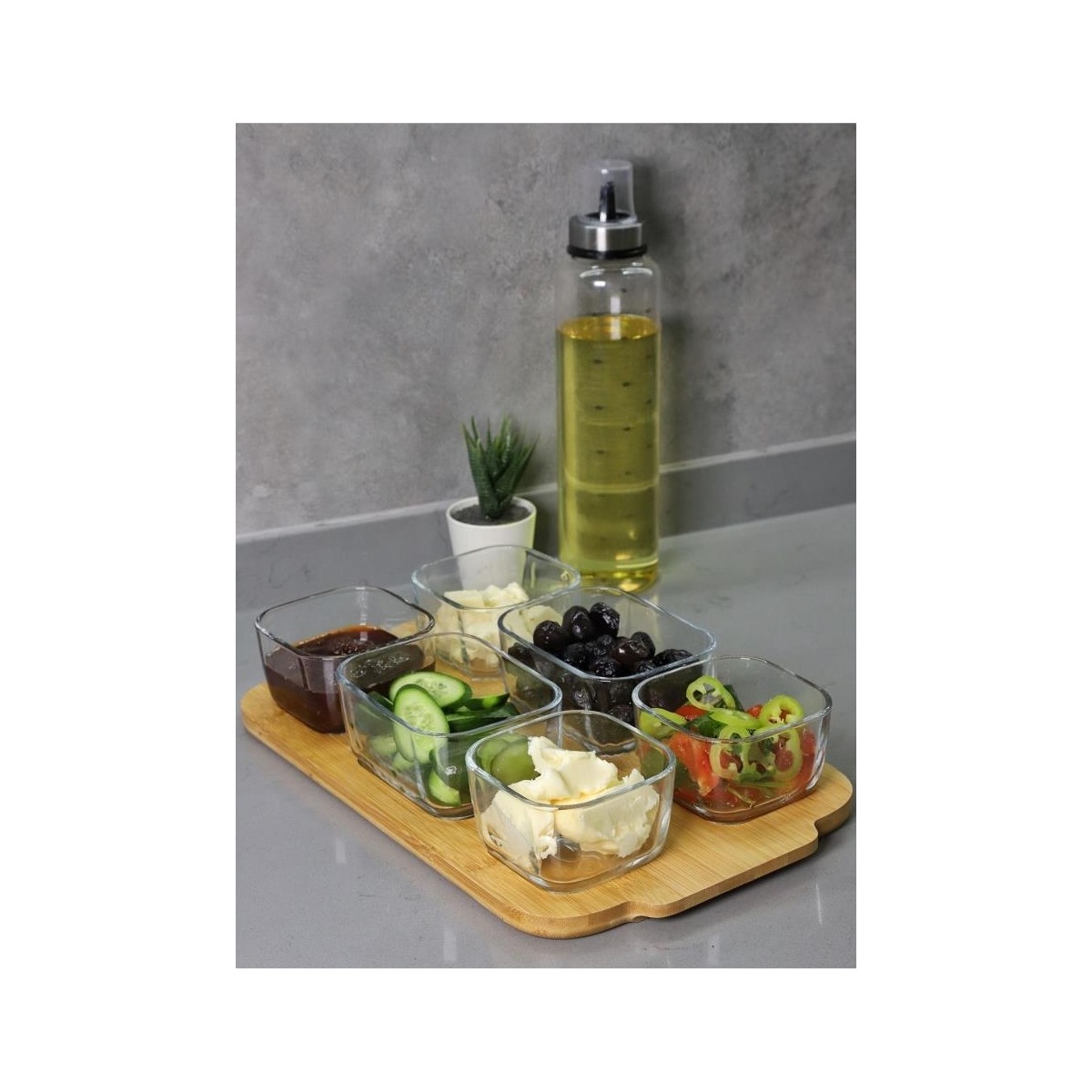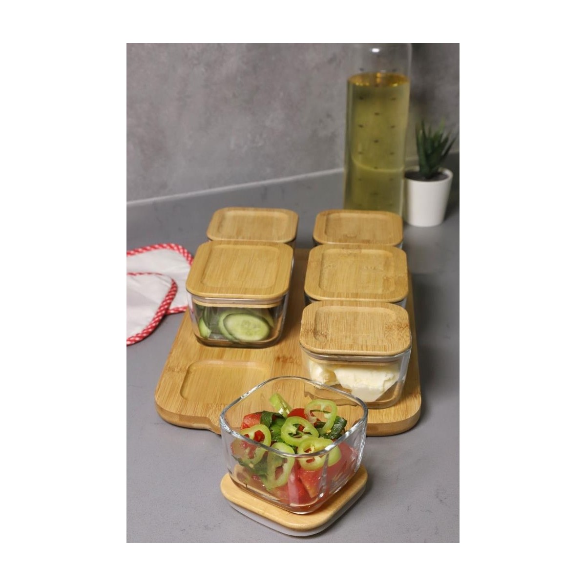 Defne 13 Parça Vakumlu Kapaklı Tepsili Borosilikat Cam Kahvaltılık Seti Lüx Kahvaltı Takımı