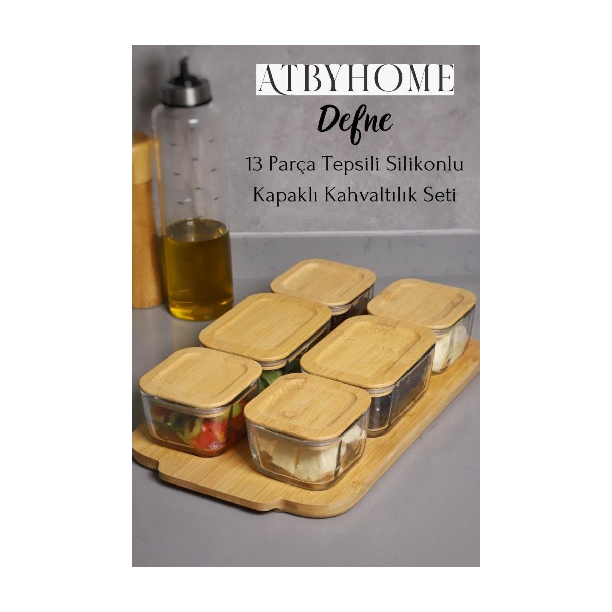 Atbyhome Defne 13 Parça Vakumlu Kapaklı Tepsili Borosilikat Cam Kahvaltılık Seti Lüx Kahvaltı Takımı