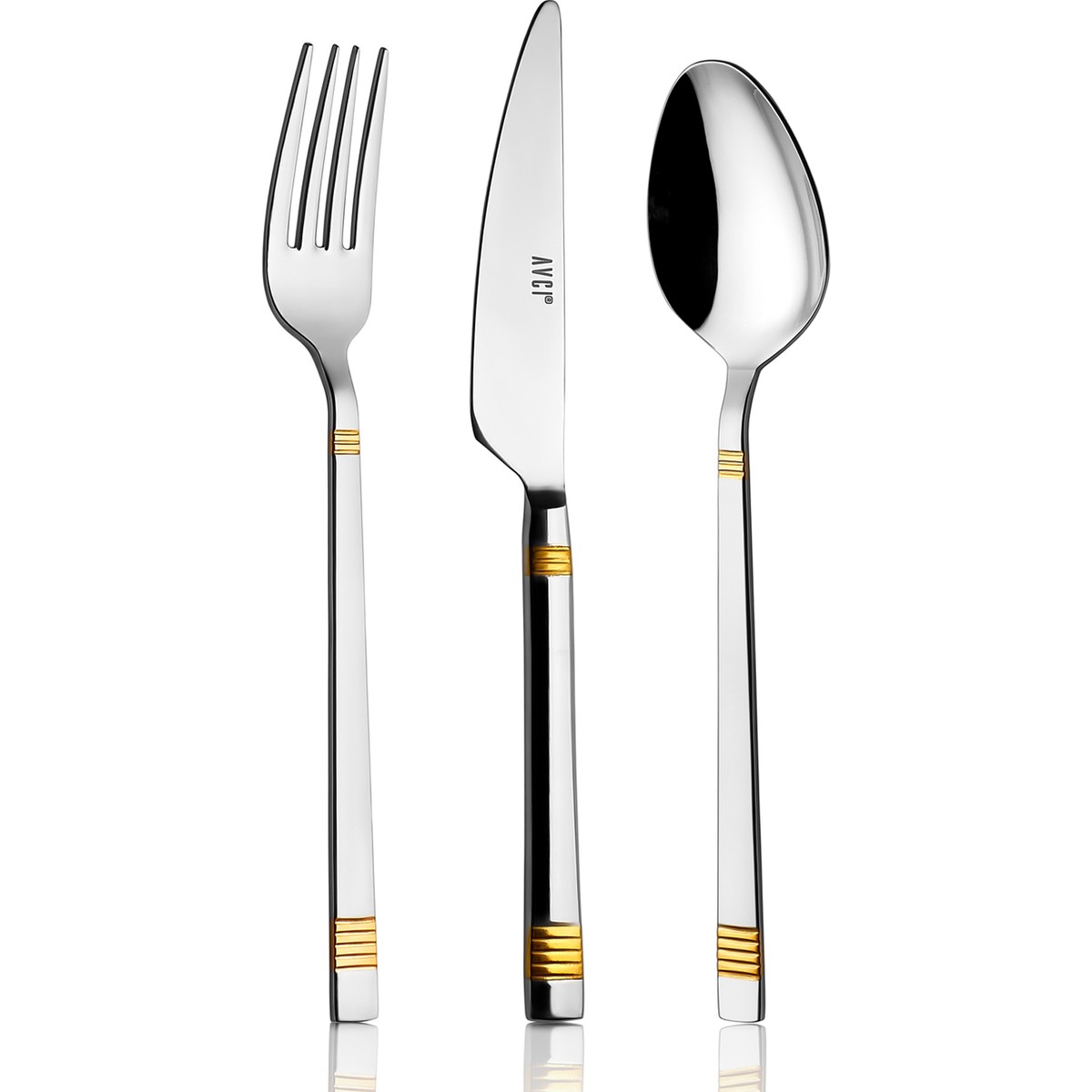6 kişilik geniş kapasite, aile yemeklerinden özel davetlere kadar her türlü sofranız için ideal ; Ürünümüz 18/10 CR/NI paslanmaz çelikten üretilmiştir olup üzeri 2 mikron kalınlığında 24 ayar altınla kaplıdır ; 2 yıl fabrikamızın garantisi altındadır ; Ürünün ilk günkü gibi kalması için elde yıkanması ve sonrasında kurulanması gerekmektedir ; Tüm ürünlerimizin arkasında 18/10 ve Markamız AVCI ibaresi bulunmaktadır ; Ürünümüz 1. kalite olup fotoğraflarda görünen şık kutusu ile gönderilir ; 6 Ad Yemek Kaşık 3 mm ; 6 Ad Yemek Çatal 3 mm ; 6 Ad Yemek Bıçak 10 mm ; 6 Ad Tatlı Çatal 2,5 mm