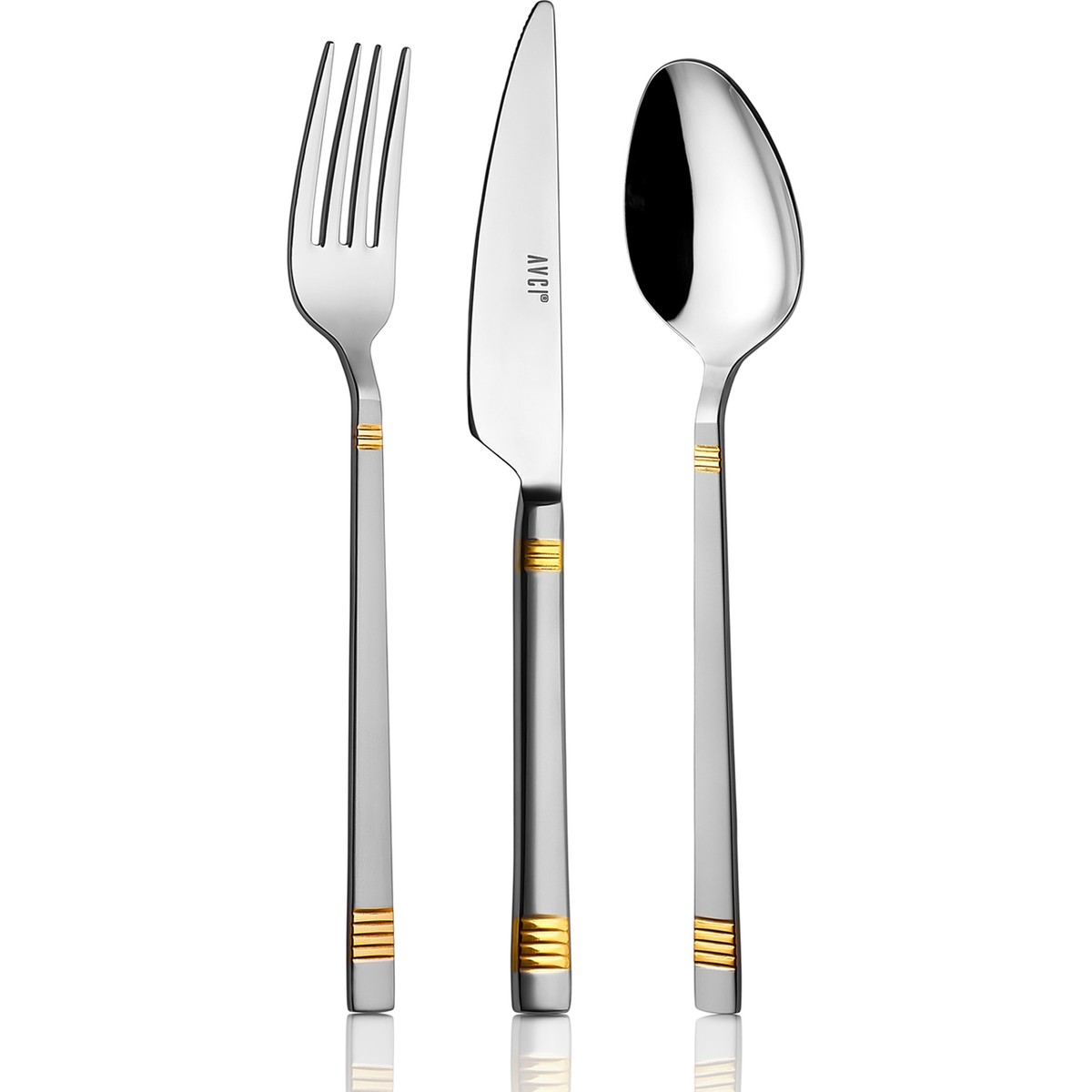 Avcı Duru Saten Gold 24 Parça Çatal Kaşık Bıçak Takımı 18/10 Paslanmaz Çelik