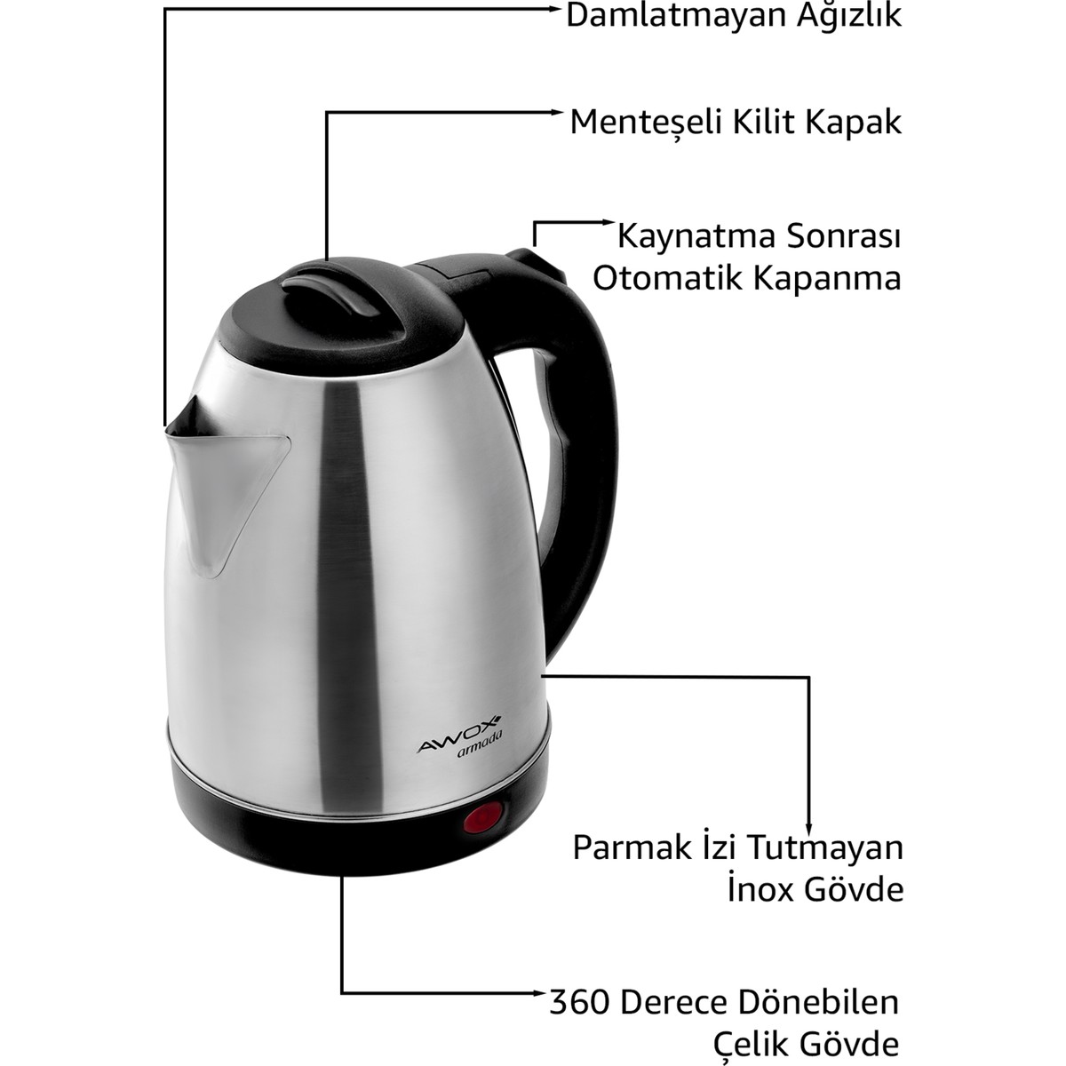 Awox Armada Inox Su Isıtcı Çelik Kettle 1.8 Lt.