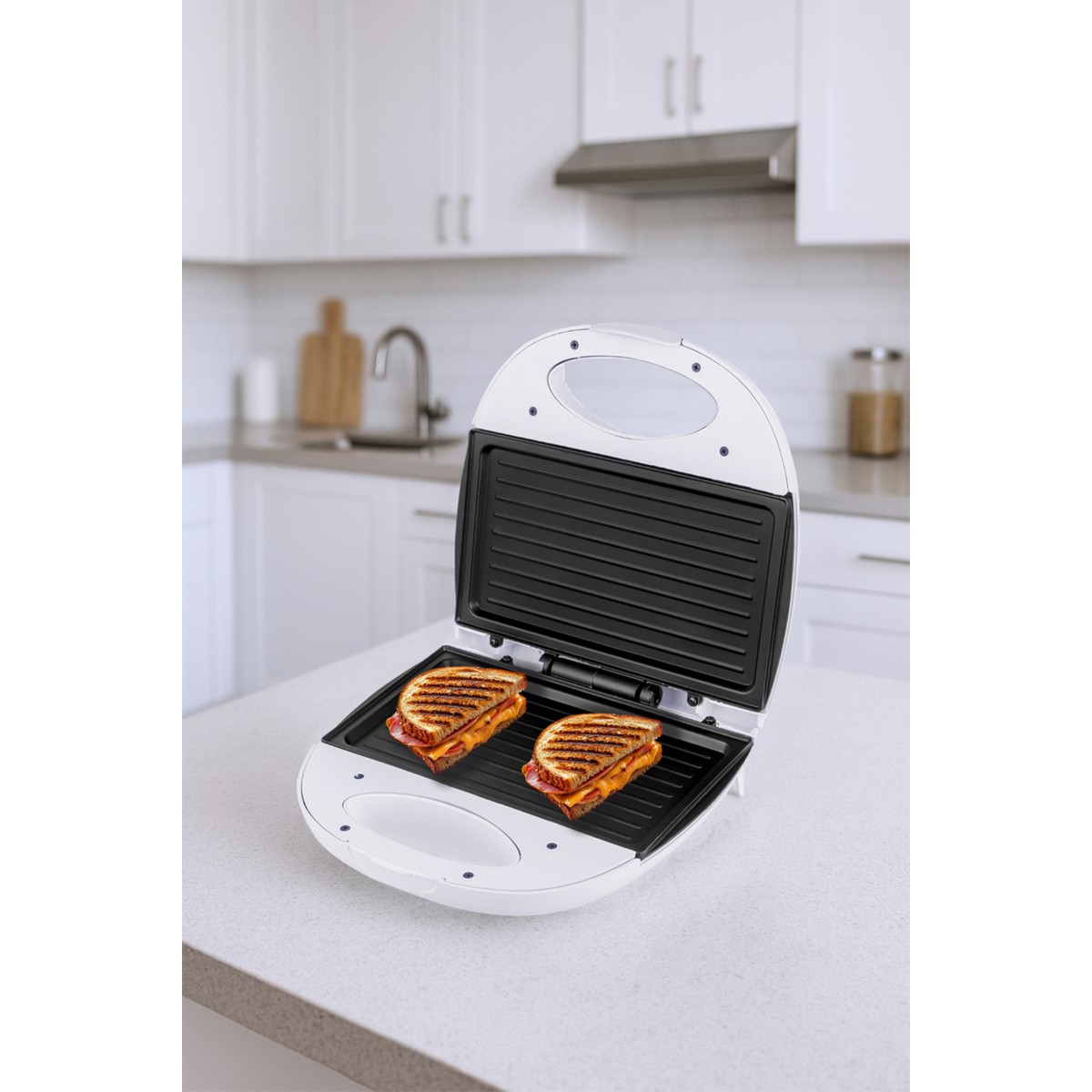 Minimal tasarlanan boyutu sayesinde neredeyse hiç yer kaplamaz ve farklı alanlarda kullanıma uygunluğu sayesinde istediğiniz yiyecekleri pratik bir şekilde pişirmenizi sağlar. – Özel Isıtıcı Plaka Seramik kaplama ısıtıcı plaka yiyeceklerinizin yanmasının ve yapışmasının önüne geçerek en doğru ısı derecelerinde dengeli bir şekilde hazırlamanızı sağlar. – Kolay temizlenen yapışmaz yüzeyler. – Çalışma Gücü: 750 W. – Çalışma Gerilim ve Frekansı: 230V, 50 Hz. – Düşük enerji tüketimi sağlar. – Isı ayarı otomatik. Yüksek ısı koruması mevcut. – Kapak kilidi mevcuttur. – Renk: Beyaz. – Isı geçirmez dış yüzeye sahiptir. – 90° Açılabilen kapak ile dik durma özelliğine sabiptir. – Termostat kontrollü iki pilot lamba mevcuttur. – Ürün Ölçüsü (ExBxD)cm: 10 x 24 x 24 – Ürün Ağırlığı: 1,135 Gr. – Kutu Ölçüsü (ExBxD)cm: 10.5 x 24.5 x 25 Kutu Ağırlığı: 1,320 Gr.