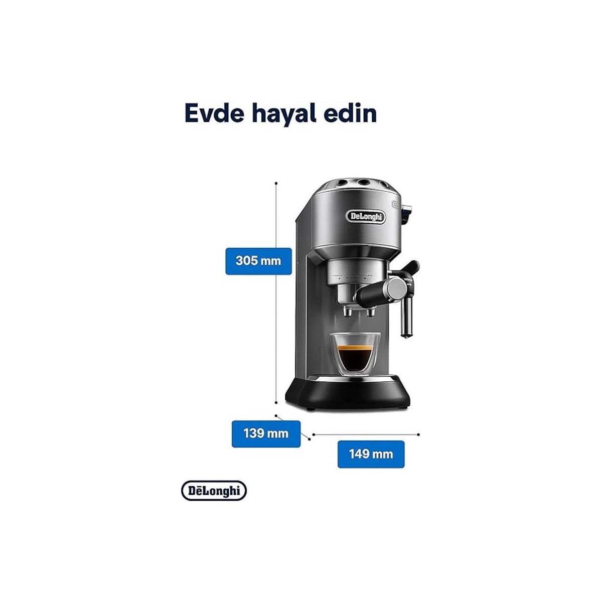 De’longhi Dedica Manuel Espresso Makinesi, 15 cm Genişlik, 1 L Kapasite, 1350W, 15 Bar Basınç