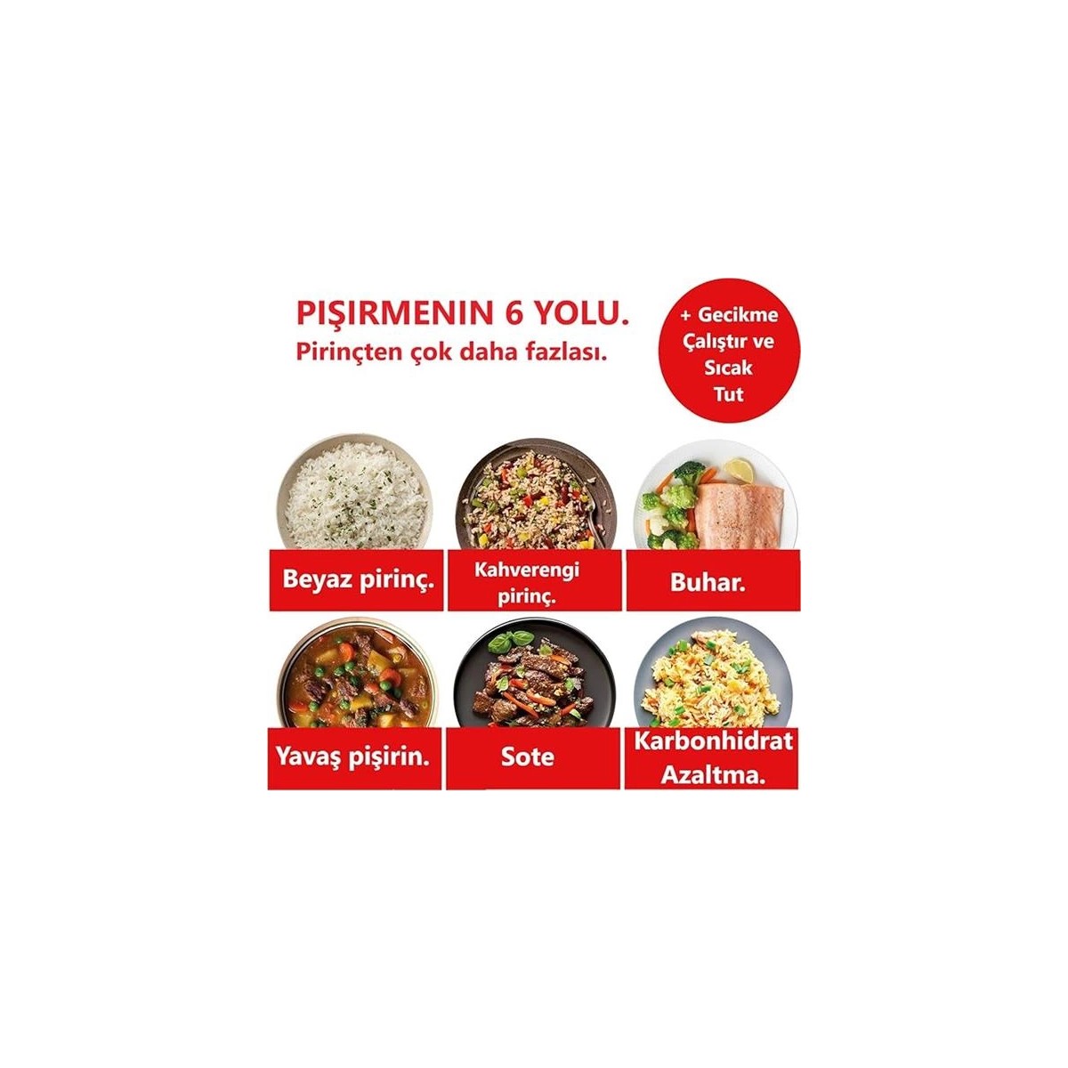 Otomatik sıcaklık ve zaman ayarlama Tattan ödün vermeden 40a kadar karbonhidrat azaltma teknolojisi 28 litre kapasite ile 20 porsiyona kadar pişirme Buharlı pişirici yavaş pişirici ve sote tavası olarak çoklu kullanım