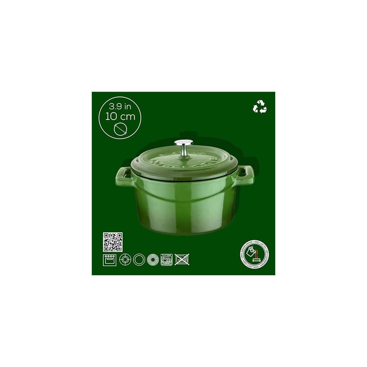 AyrStore Metal Döküm Mini Tencere, 10 Cm, 0.35 L Hacim, Yeşil