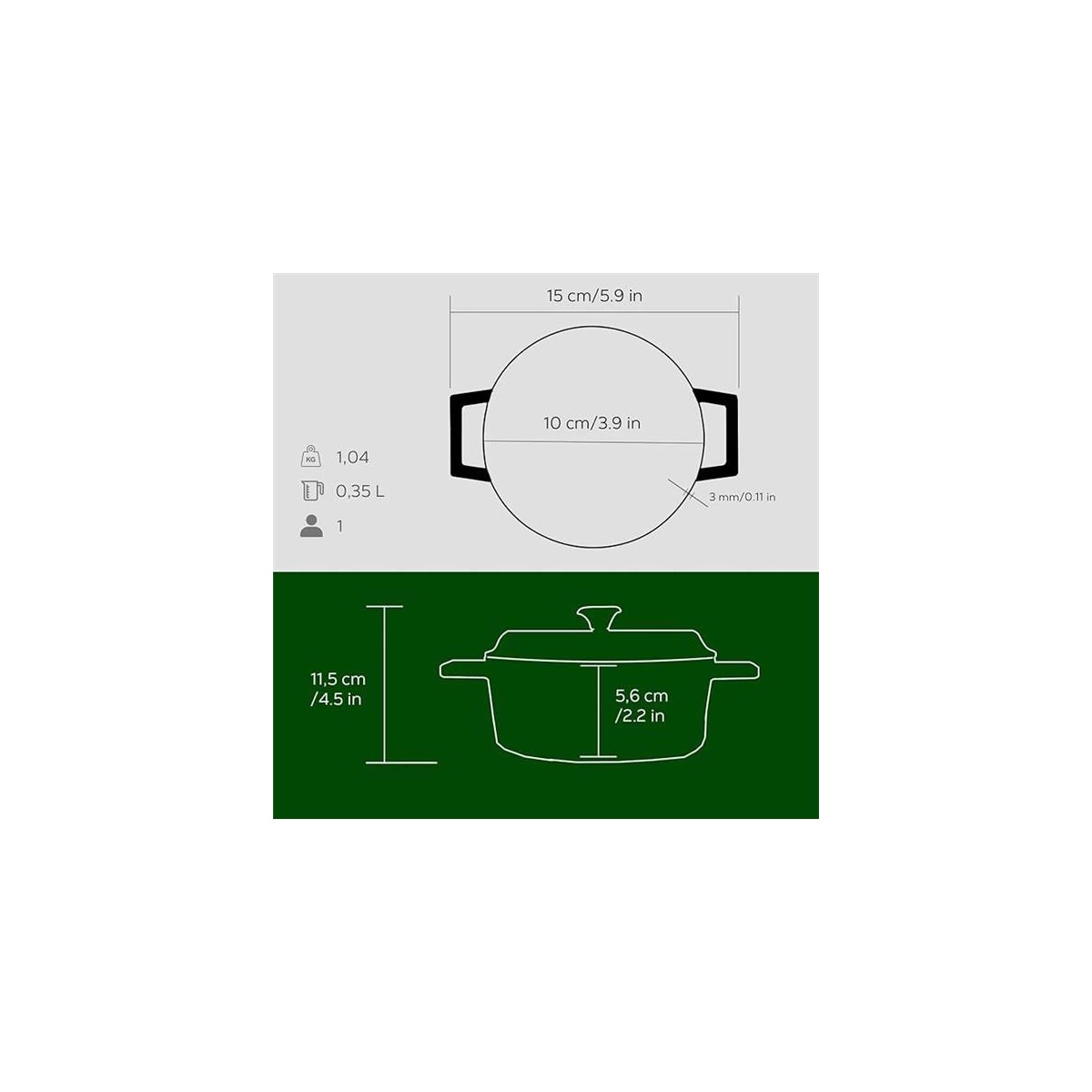 Metal Döküm Mini Tencere, 10 Cm, 0.35 L Hacim, Yeşil