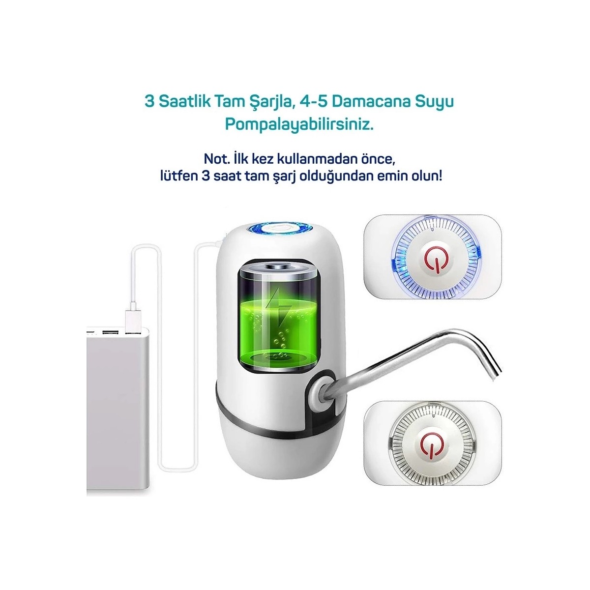 Yeni Nesil Dokunmatik Damacana Su Pompası Şarjlı 1200 Mah
