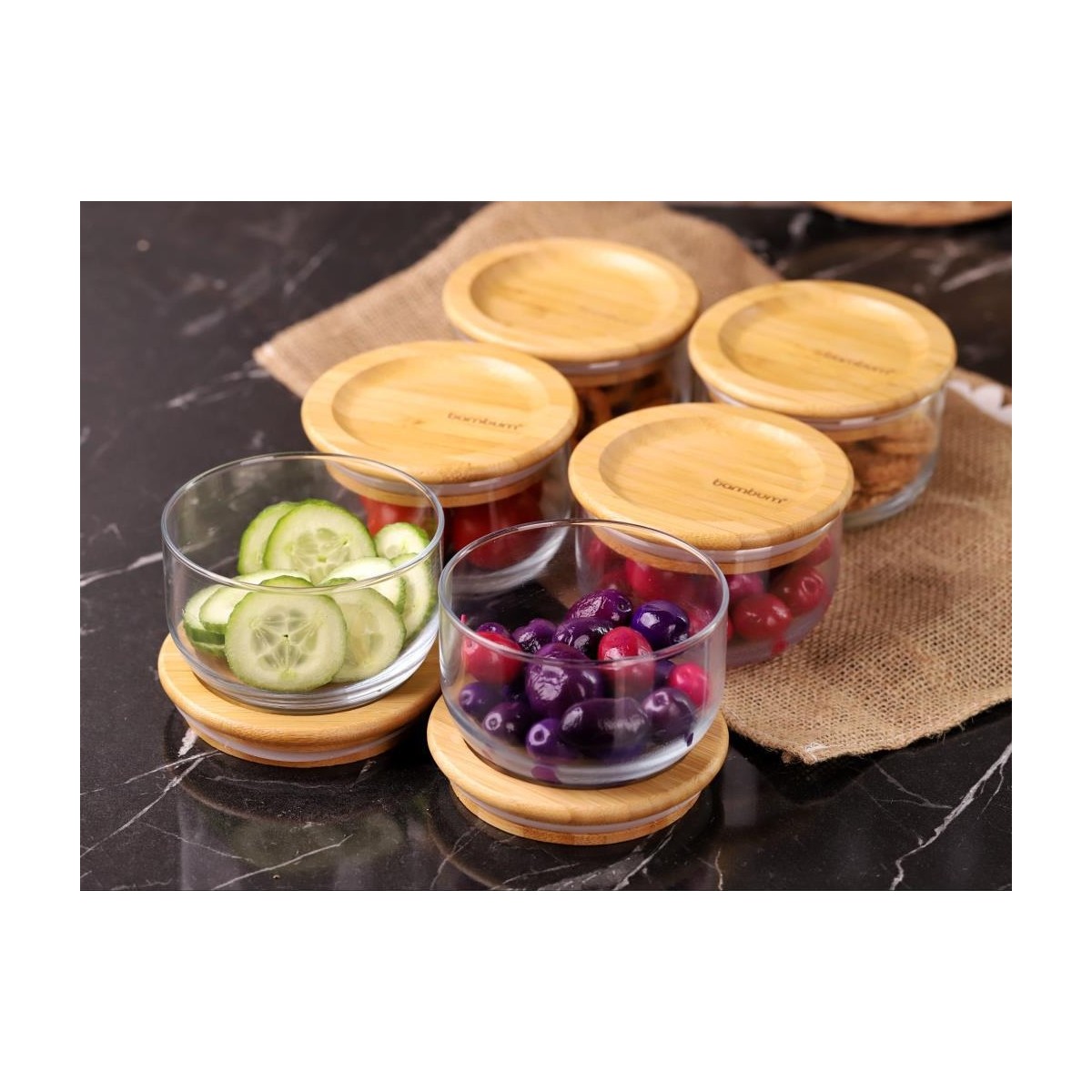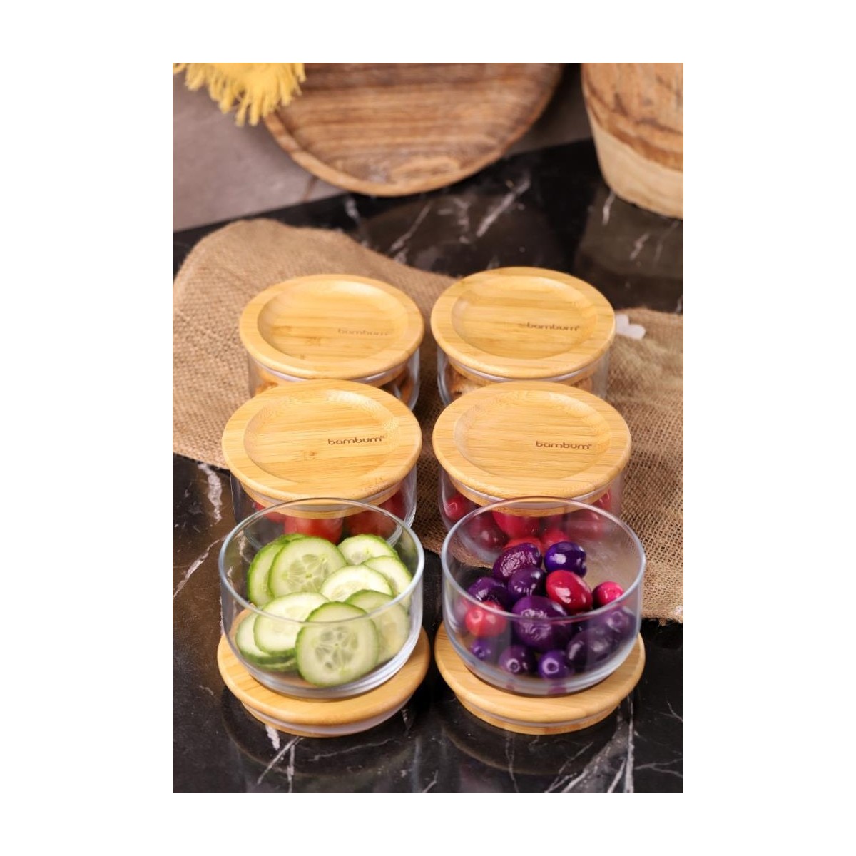 Bambum Duo 300ML 6’lı Bambu Kapaklı Cam Kahvaltılık Seti