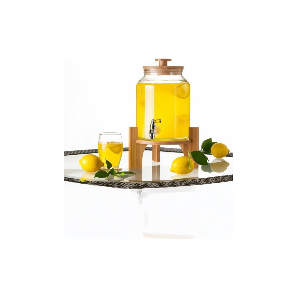 cam sebil, bambu kapaklı sebil, bambu standlı sebil, 3 litrelik cam sürahi, Bambum Fuente sebil, doğal sunum seti, yazlık içecek sebili, sağlıklı cam sebil, dekoratif içecek dispenser, mutfak cam sebil
