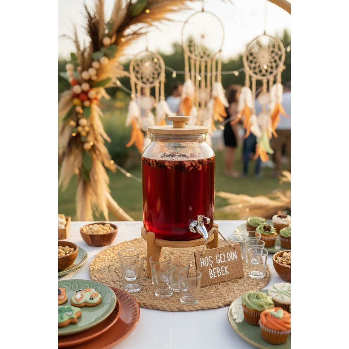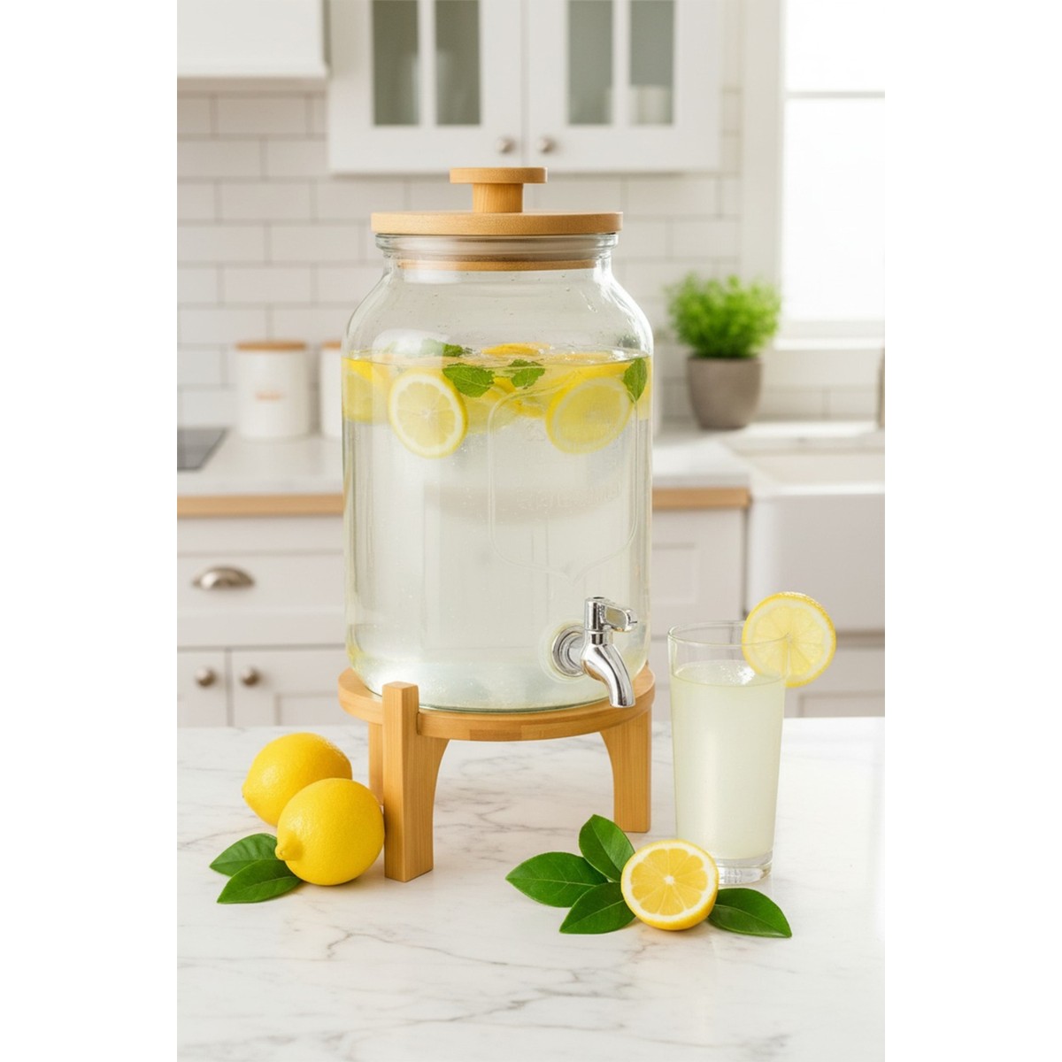 Bambum Fuente 4L Musluklu Cam Sebil – Bambu Kapaklı & Standlı