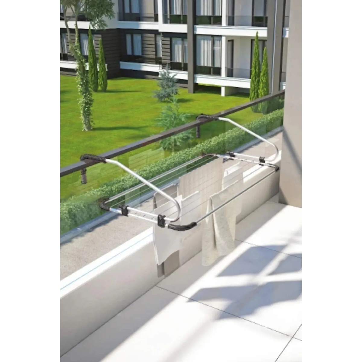 Bayev Eko Yeni Dirsekli Balkon Kurutmalık Siyah – Balkon Askısı Çamaşırlık