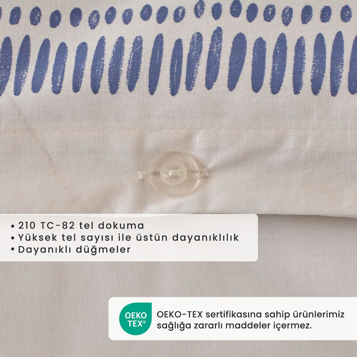 240×220 cm mavi renkli %100 pamuk 82 tel saten Marine King Size Nevresim Seti.%100 doğal pamuk ipliklerinin yüksek nem emici özelliği sayesinde terletmez. Türkiyede üretilmiştir. OEKO-TEX ve BSCI sertifikalıdır. Kanserojen ve alerjen metaller içermez. Cildi tahriş etmez ve insan sağlığına zarar vermez. Sağlığımız için risk teşkil eden azoik boya kullanılmaz. 30 Derecede yıkanabilir, Düşük devirde