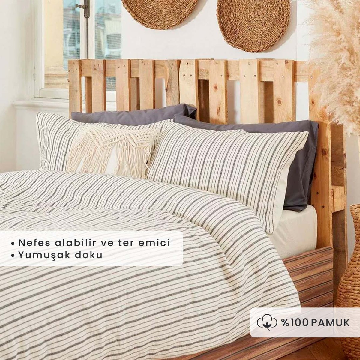 Bella Maison %100 Pamuk Sevilla Çift Kişilik Nevresim Takımı Antrasit (200×220 cm)