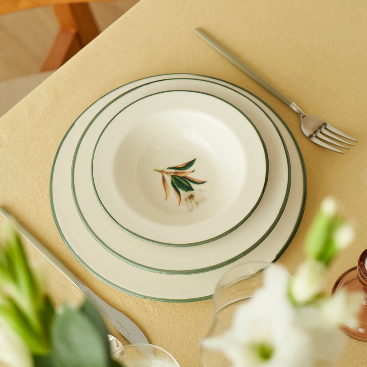 Kardelen, manolya, orkide ve kiraz çiçeklerinin, dört farklı renk ile kombinlendiği 12 parça 4 kişilik yemek takımı. Set içeriği fotoğraflarda görüldüğü gibi 4 ayrı renkten oluşmaktadır.