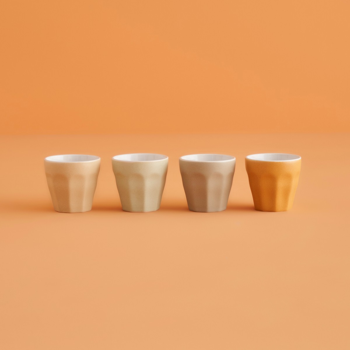 4 adet 90 cc hacme sahip porselen kahve fincanı seti.