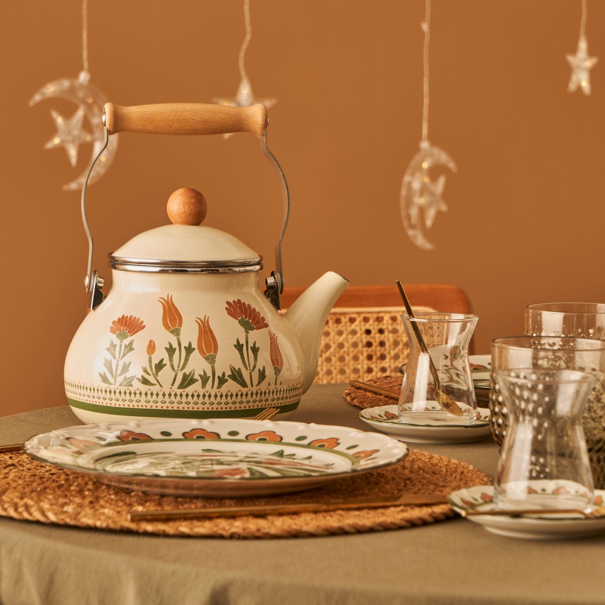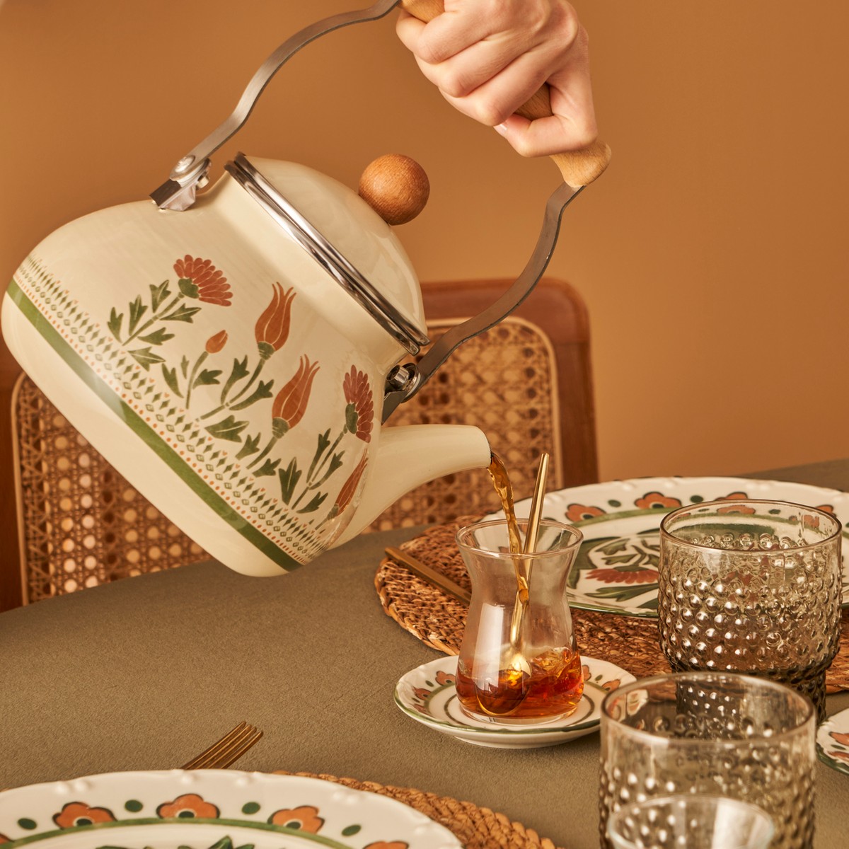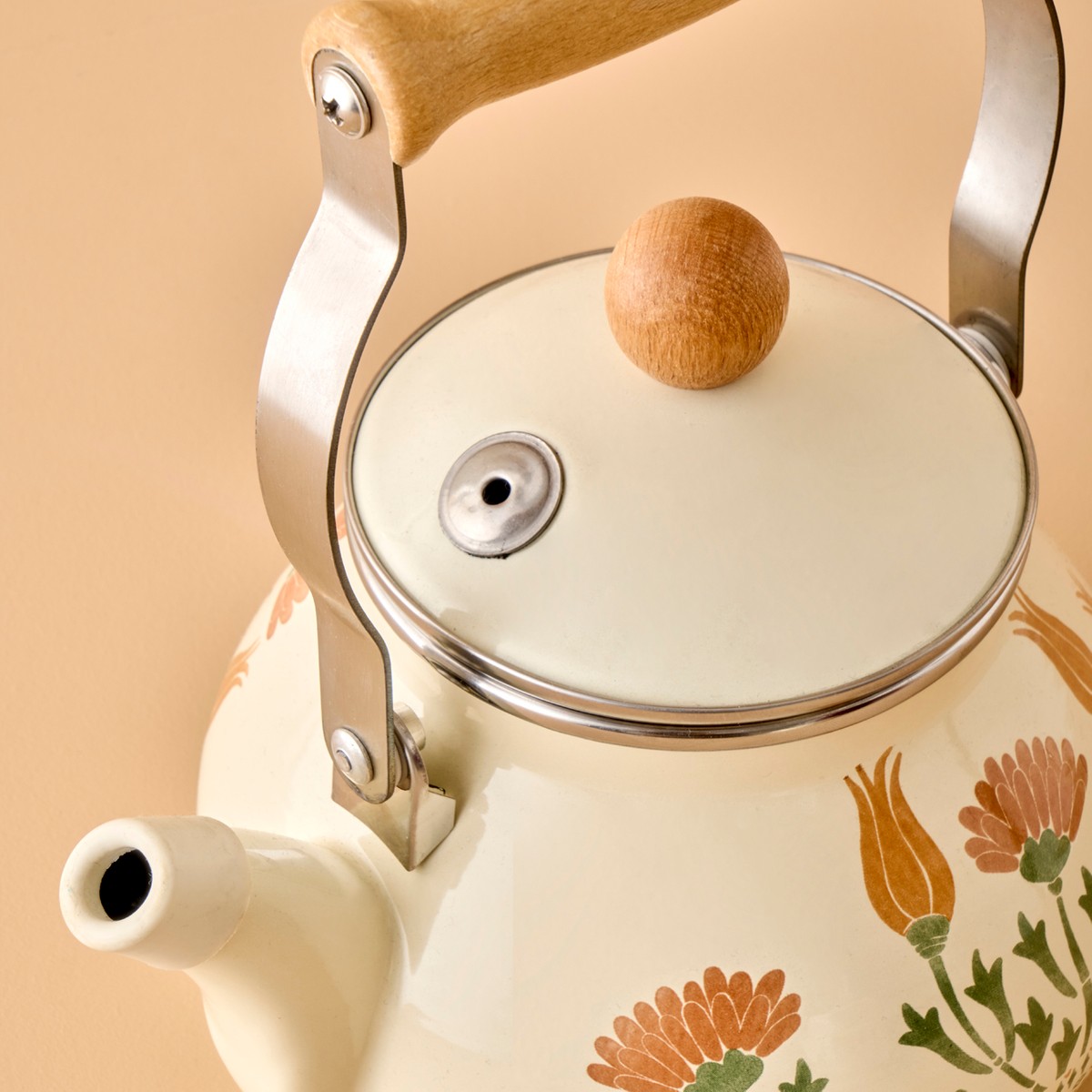 Tulip koleksiyonuna ait emaye kaplamalı desenli demliktir. Tutma yerinde ve kapağında ahşap detayları bulunmaktadır. İç ve dış yüzeyler 450 dereceye dayanıklı emaye boya ile kaplıdır. 2 lt hacmi olan demliğin çapı 19, boyu 23, yüksekliği 19 cm’dir. İlk kullanımdan önce yumuşak sünger ve deterjanlı sıcak su ile yıkayınız, kurulayınız ve yüzeyi yemeklik sıvı yağ ile siliniz. Ambalajında sadece vitro ceram ve/veya halojen ocaklarına uygunluk sembolu olan ürünler bu ocaklarda kullanılabilir. Sap ve kulplarının korunması, ahşap kısımlarına zarar gelmemesi için ürününüzü gazlı ocağın üzerine yerleştirdiğinizde, ocağınızın alevi ürün tabanının dışına taşmamalıdır. Ürünler ocak üstünde içinde bir şey yokken uzun süre bırakılmamalıdır.Sadece plastik veya tahta mutfak gereçleri kullanınız. Metal gereçleri asla kullanmayınız. Mutfak eşyanıza keskin ve ucu sivri cisimler sürtmekten kaçınınız. İçinde herhangi bir şey kesmeyiniz. Ürününüzü ani ısı değişimlenne maruz bırakmayınız; sıcak iken soğuk suya daldırmak veya soğuk bir yüzeye koymak gibi. Ürünü yıkamadan önce ortam sıcaklığına gelmesini bekleyiniz. Sabunlu sıcak su ile yıkayınız. Bulaşık teli ve sert yıkama gereçleri kullanmayınız. Ahşap tutamaçların bulaşık makinesinde ve sıcak suda yıkanması uygun değildir. Gıdayla temasa uygundur.