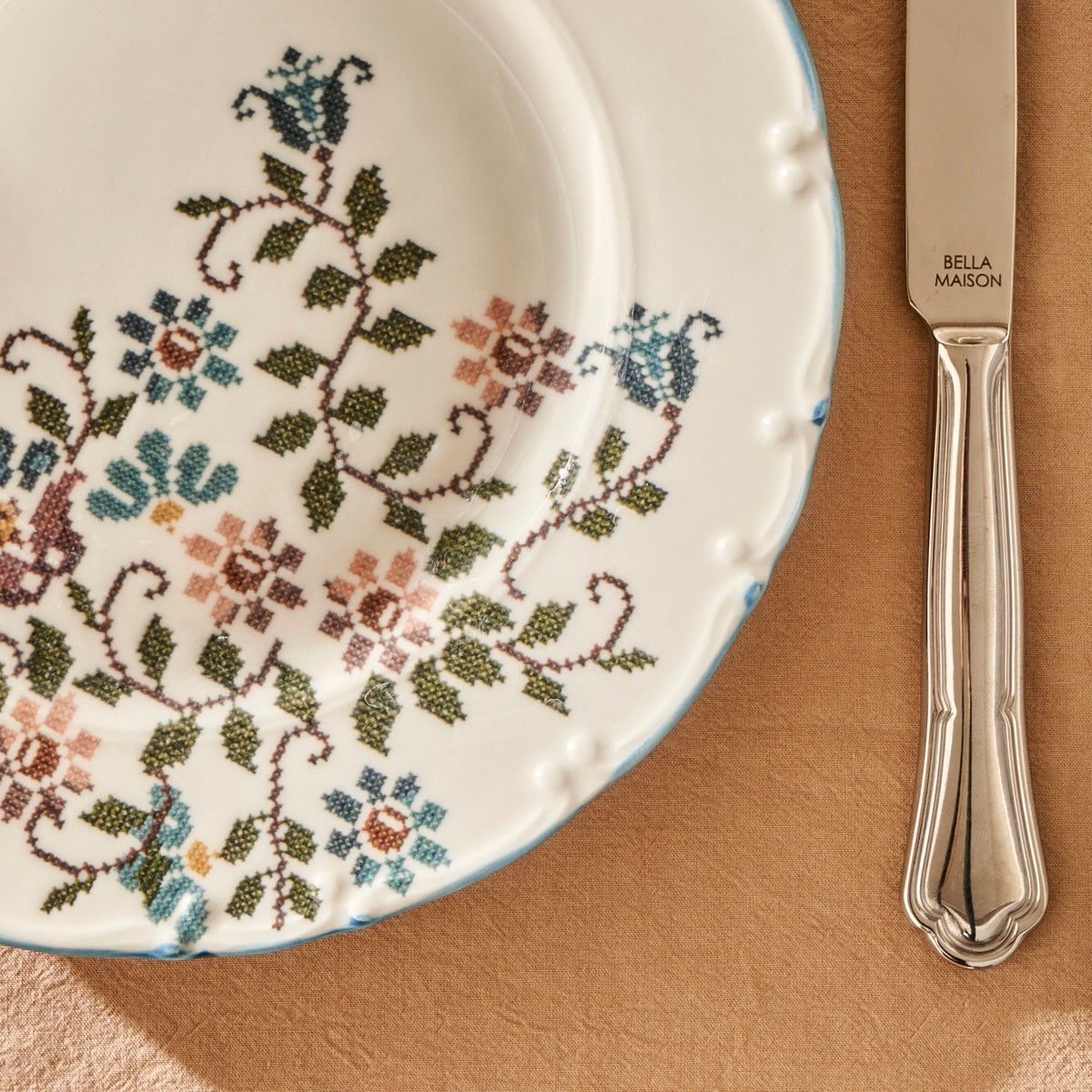 Vintage koleksiyonumuza ait nakış desenli farklı bir teknikle sır altı olarak işlediğimiz rölyefli 6 kişilik 26 parça porselen kahvaltı takımı. Makinede yıkamaya uygundur.