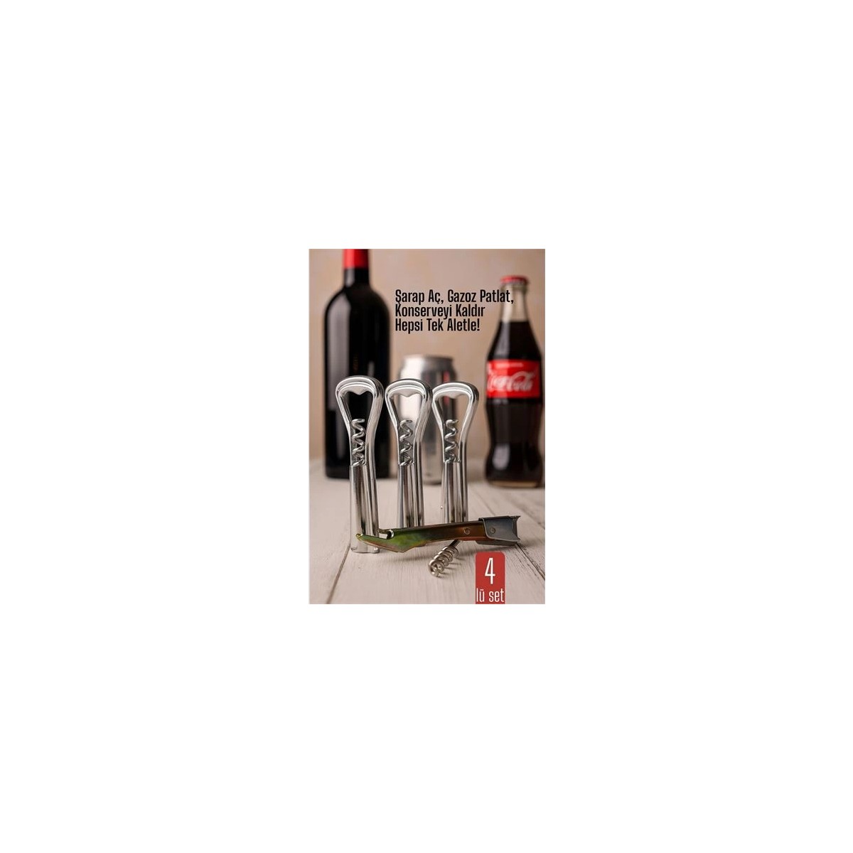 Bu 4’ü 1 arada metal açacak; şarap şişeleri için tirbuşon, gazoz ve soda gibi içecekler için şişe açacağı ve konserve kutuları için özel tasarımlı açacak fonksiyonlarını bir araya getirir.