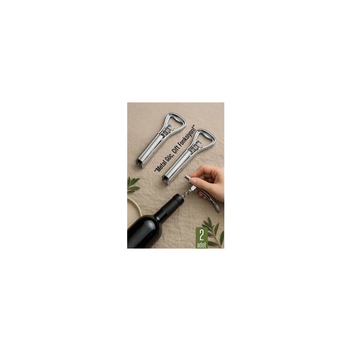 Bu metal şişe açacağı ve tirbuşon, hem mantarlı şarap şişelerini hem de kapaklı içecekleri açmak için tasarlandı.