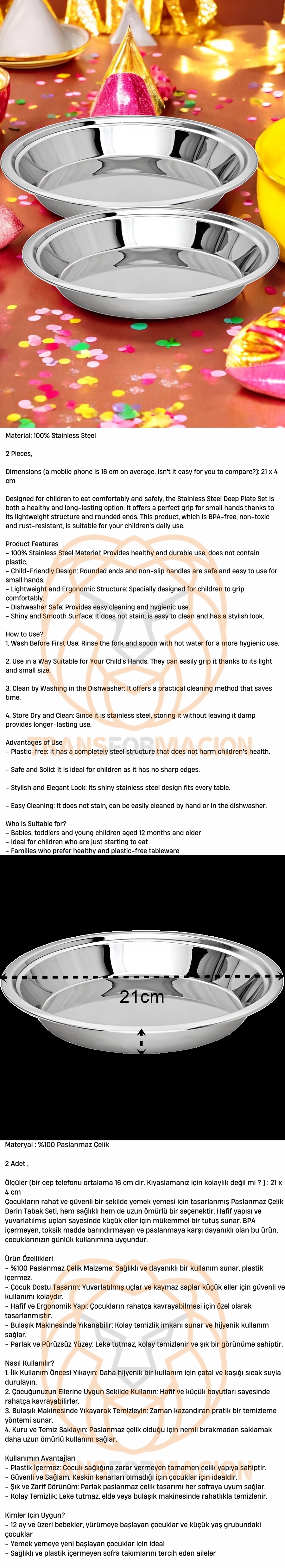 Bfs Çocuk Tabağı Güvenli Kenarlı Çelik 2 Adet 21 cm