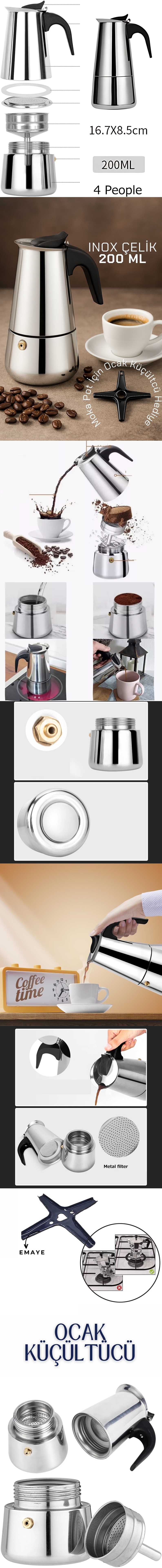 Bfs Inox Moka Pot – Paslanmaz Çelik Profesyonel Moka Pot – 200 ml