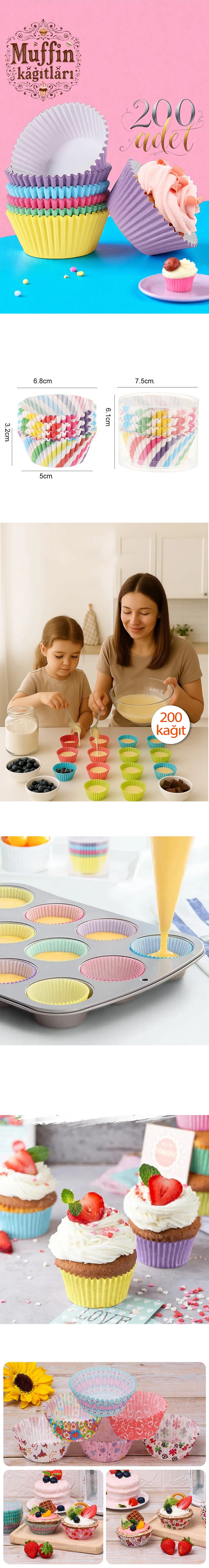 – Paket içeriği: 200 adet renkli muffin kağıdı