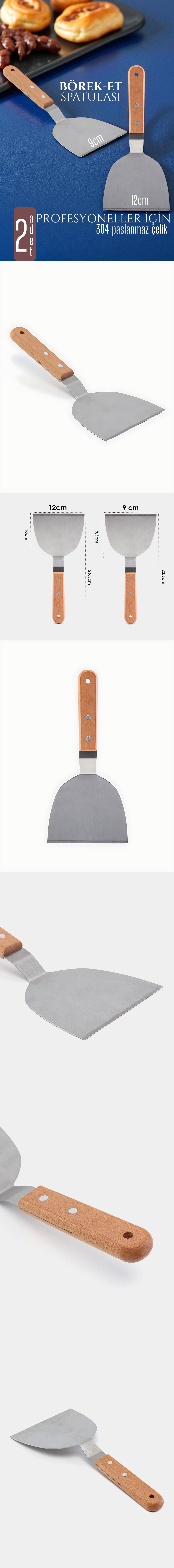 ? Profesyonel Börek & Et Spatulası – 2’li Set | 304 Paslanmaz Çelik + Ahşap Sap | 9cm & 12cm