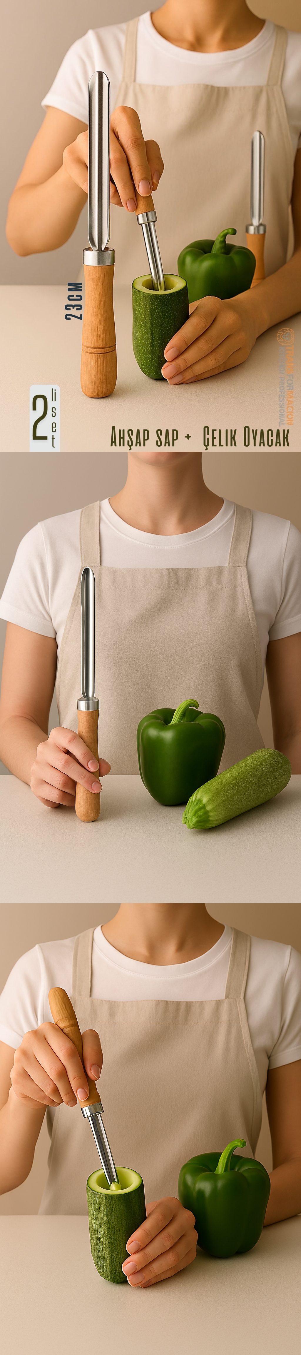 ?️ Dolmalık Biber & Kabak Oyacağı – 23 cm | 304 Paslanmaz Çelik + Ahşap Sap | Transformacion Kitchen Professional