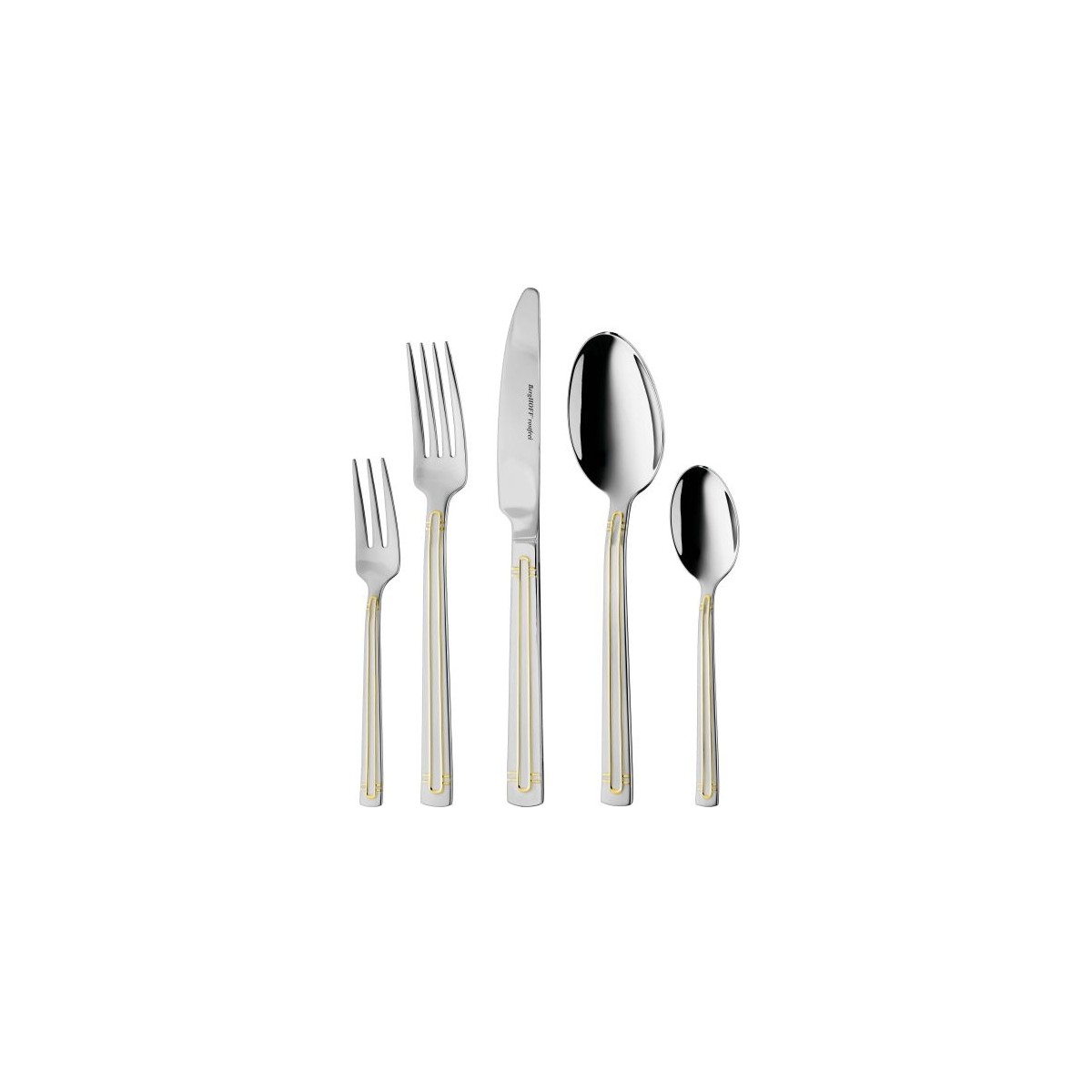 Heritage çatal bıçak takımını yemek masanıza koyduğunuzda bir yıldız gibi parlayın! Çarpıcı detaylara sahip bu setin sapının hem ön hem de arka tarafında bulunan altın renkli astarlar, çatal bıçak takımına zarif bir görünüm ve his kazandırır. Kulpların dikdörtgen yüzeyi, çatal bıçak takımının kavisli kenarlarıyla uyumlu bir denge oluşturur. Tasarımcı Ralph Kraemer, zarif bir dış hat ile hafif ve rahat bir tutuşu bir araya getirerek bu seti zamansız bir mücevhere dönüştüren bir zarafet yaratıyor.