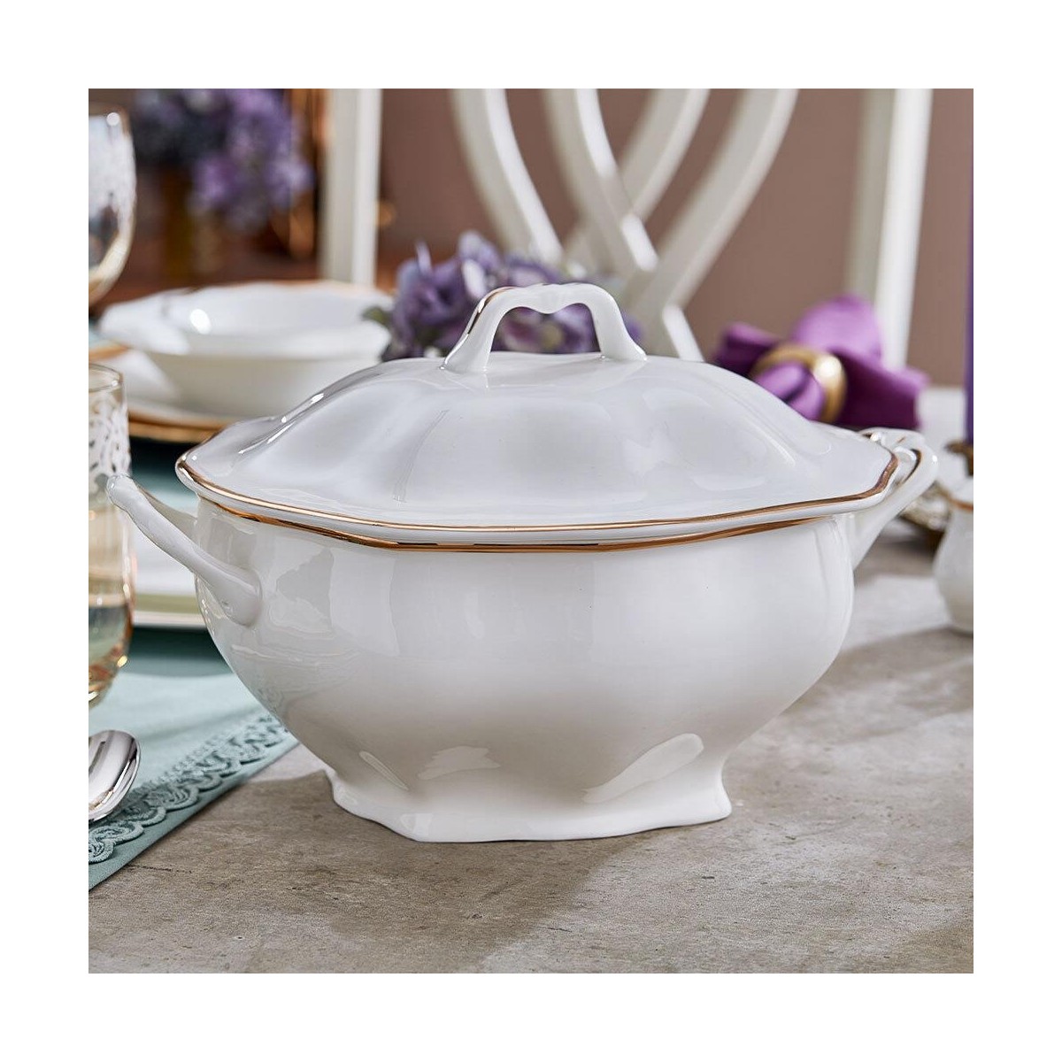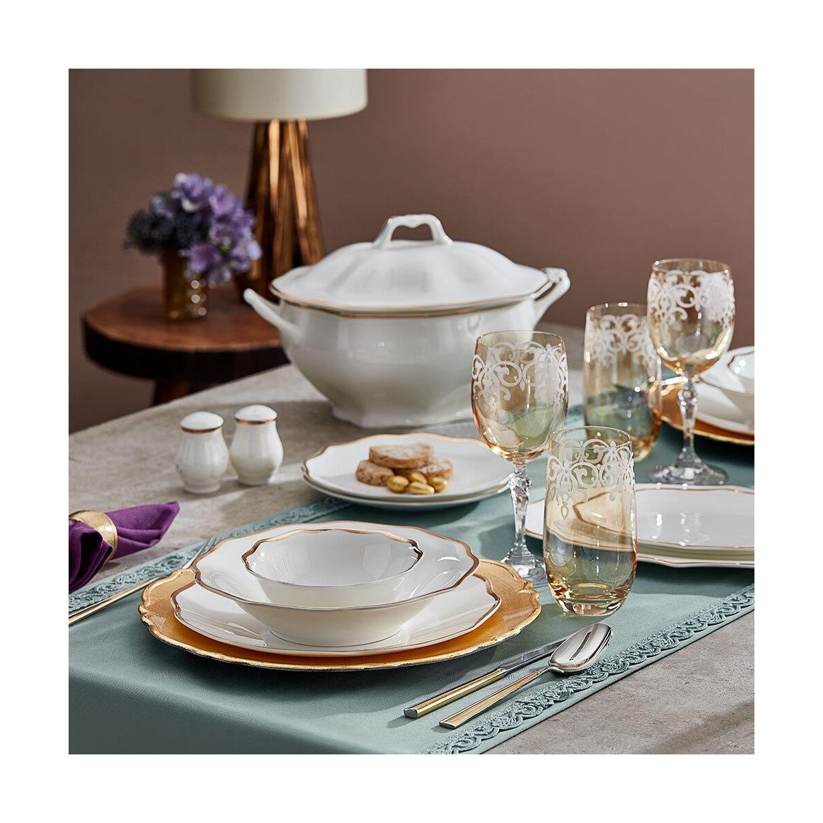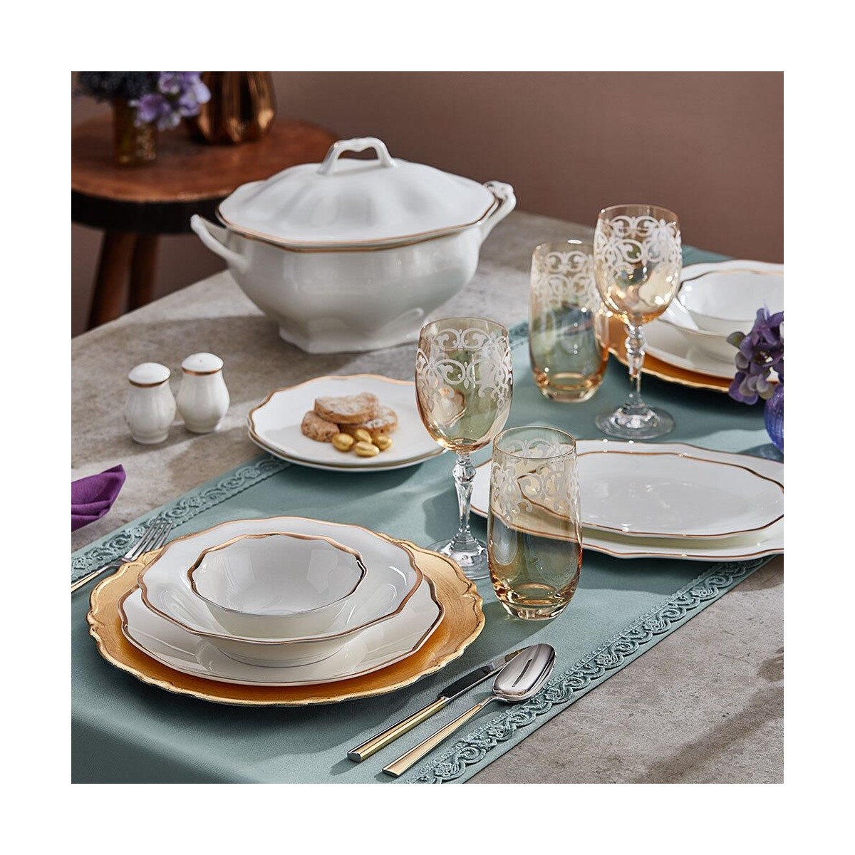 12 Adet Servis Tabağı 12 Adet Çukur Tabak 12 Adet Tatlı Tabağı 12 Adet Komposto Kasesi 2 Adet Küçük Kayık Tabak 1 Adet Büyük Kayık Tabak 1 Adet Çorba Tenceresi ve 1 Adet Kapağı 2 Adet Tuzluk 2 adet Biberlik