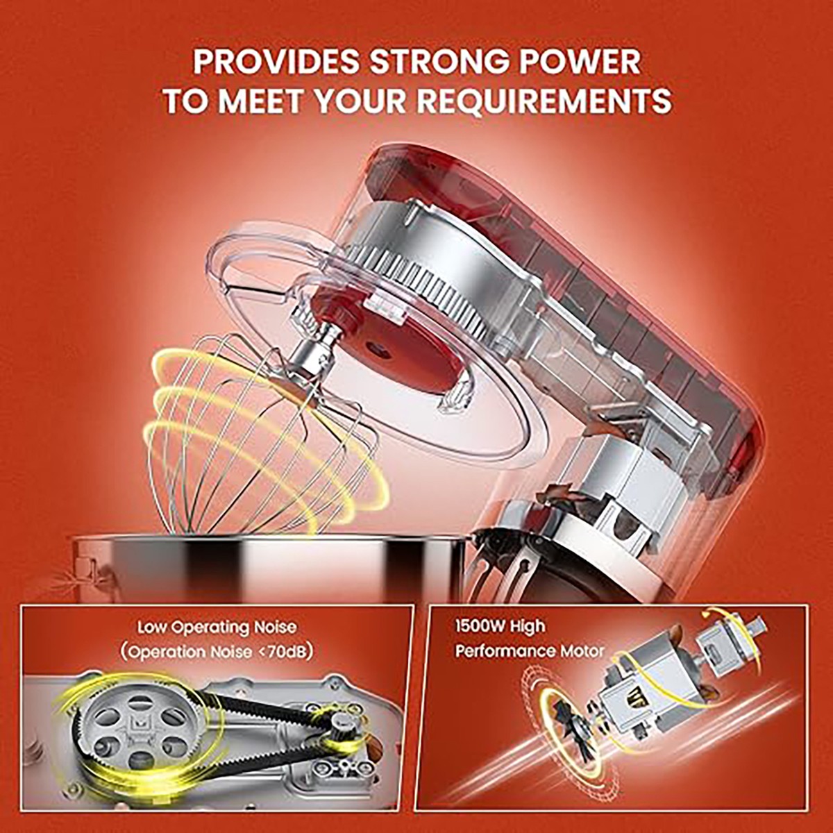 Betry Hamur Yoğurma Makinesi 1500W, kirlilik içermeyen yüksek kaliteli ham maddeler kullanır ve düşük çalışma gürültüsüne (maksimum ≤75 dB) ve titreşim önleyici tasarımı sayesinde sessizdir.