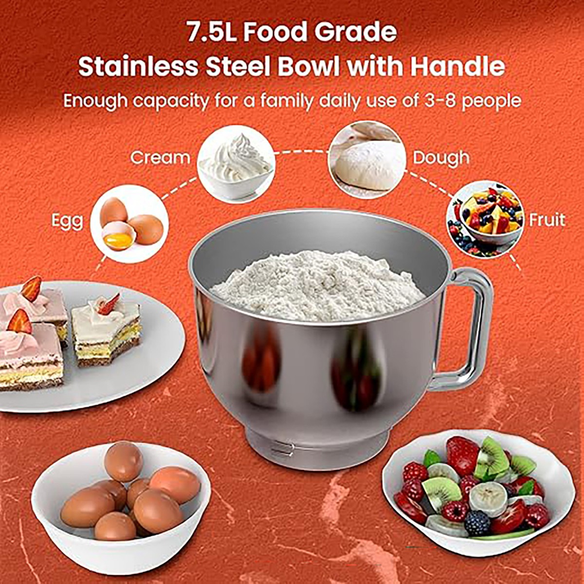 Salon sensörü ve ek bir darbe ayarı ile donatılmıştır. Ekmek hamuru, kalın hamur, beze ve krema hafifçe yoğurun.
