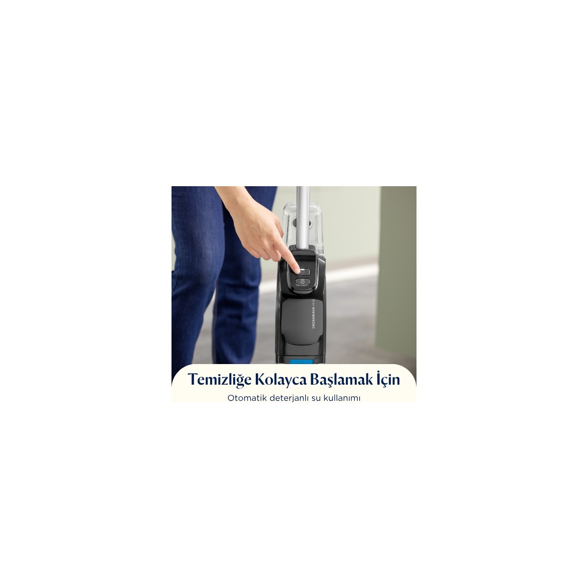 • Çift Hazne Teknolojisi: Temiz ve kirli su her zaman ayrı haznelerdedir; bu sayede zeminlerinizi her zaman temiz suyla silersiniz.