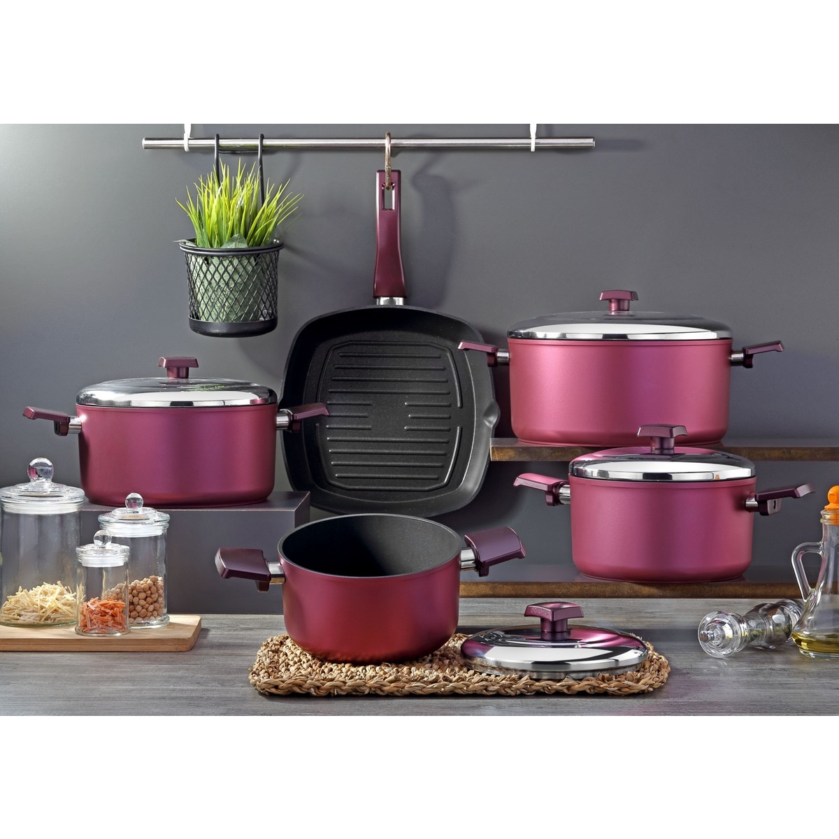 Bonera Atlas 9 Parça Eflatun Titanyum Tencere & Tava Seti