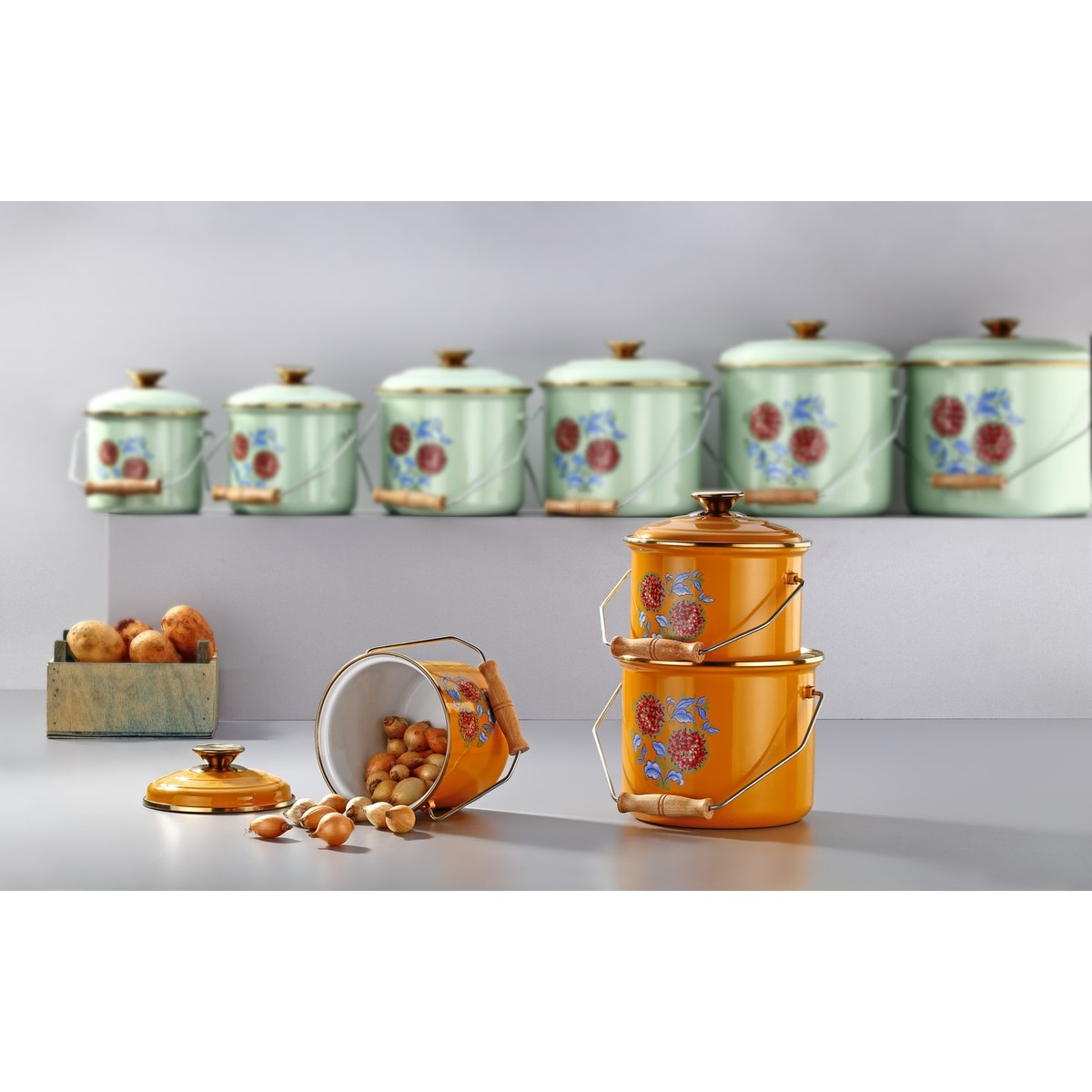 Bonera Emaye 3’lü Hardal Sarısı Bakraç Set, 20-22-24cm Yoğurt Mayalama Seti