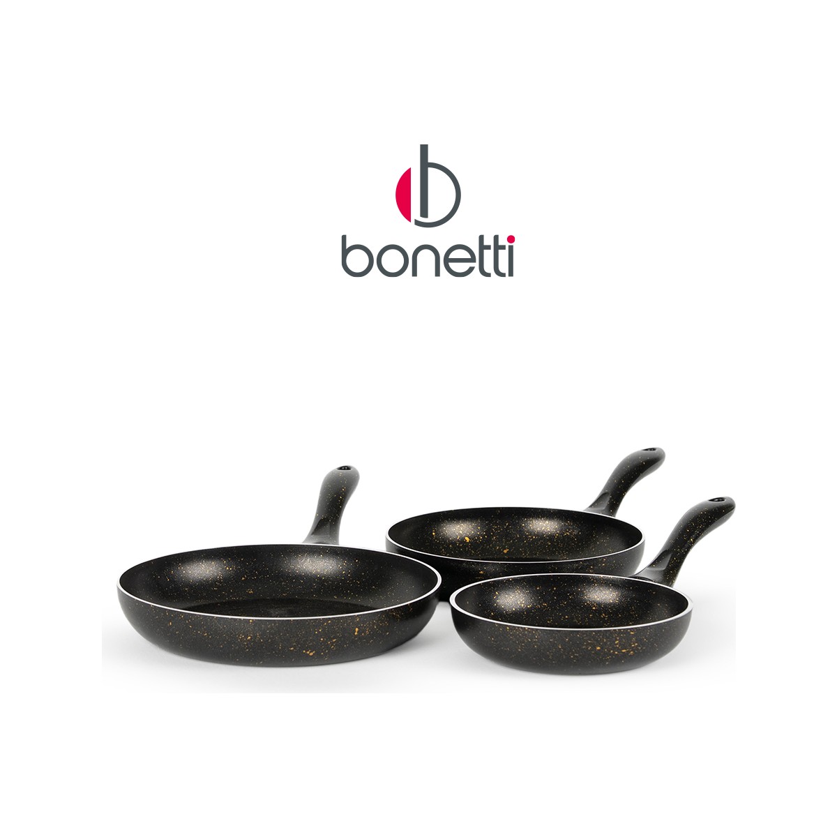 Bonetti Premium 3’lü Granit Tava Seti Yanmaz Yapışmaz Çizilmez Siyah | 20-24-28 cm |