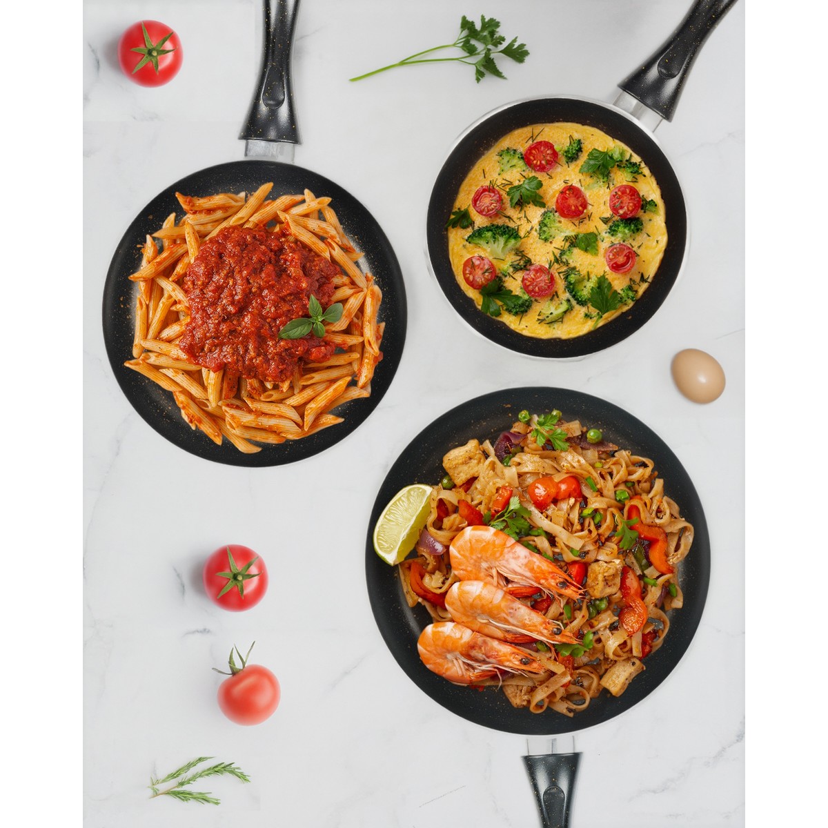 Granit Siyah 3’lü Tava Seti 20 cm / 24 Cm/ 28 cm