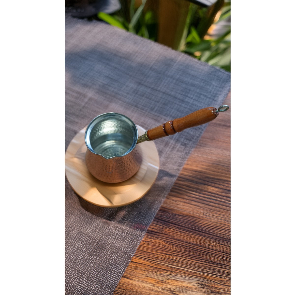 Börte Store Osmanlı Motifli, Ahşap Saplı, Bakır Kahve Cezvesi 4 Kişilik