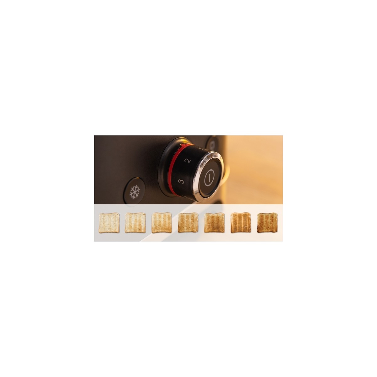 Kruvasan, çörek ya da poğaça türü hamur işlerini dahi kolaylıkla ısıtmayı sağlayan çıkarılabilir ısıtıcı aparata sahip ekmek kızartma makinesi. Paslanmaz çelik detayları ve heyecan verici mat-parlak yüzeye sahip tasarımı ile mutfağınıza stil katacak.