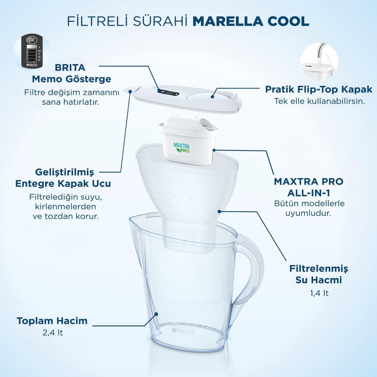 *Kutu içerisinde 2 adet MAXTRA PRO ALL-IN-1 su filtresi ve 1 adet BRITA Marella Cool Sürahi bulunmaktadır.