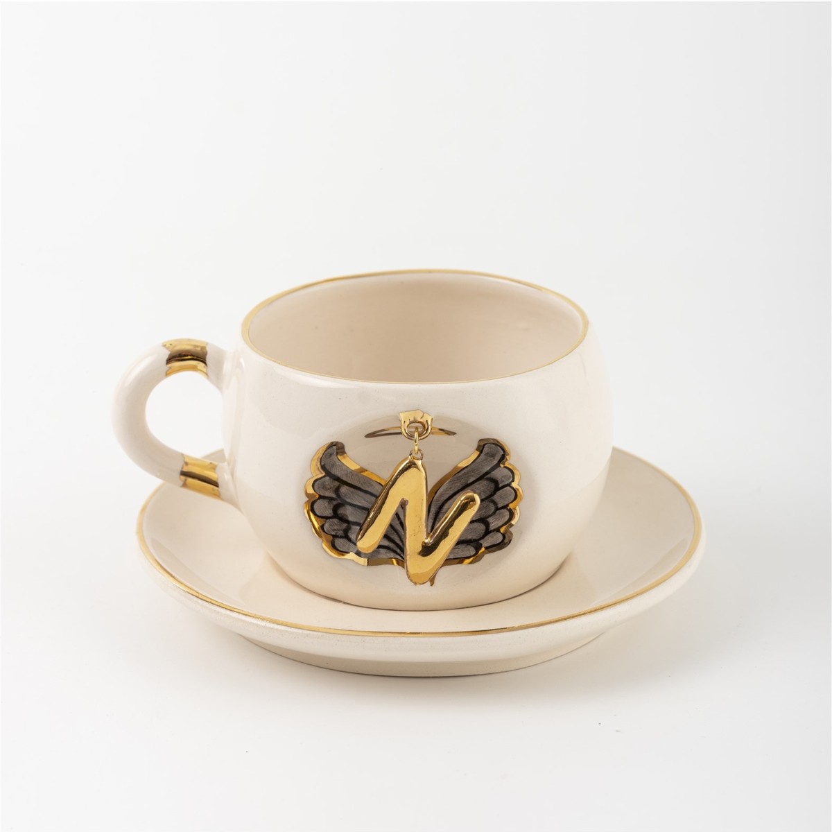 Harfli Melek Çay Fincanı Siyah N Harfi