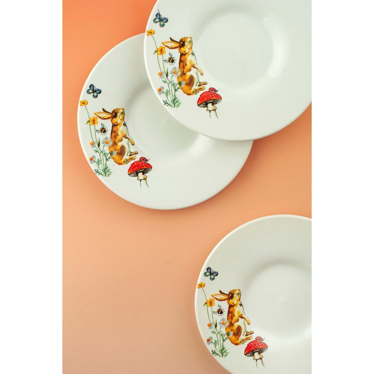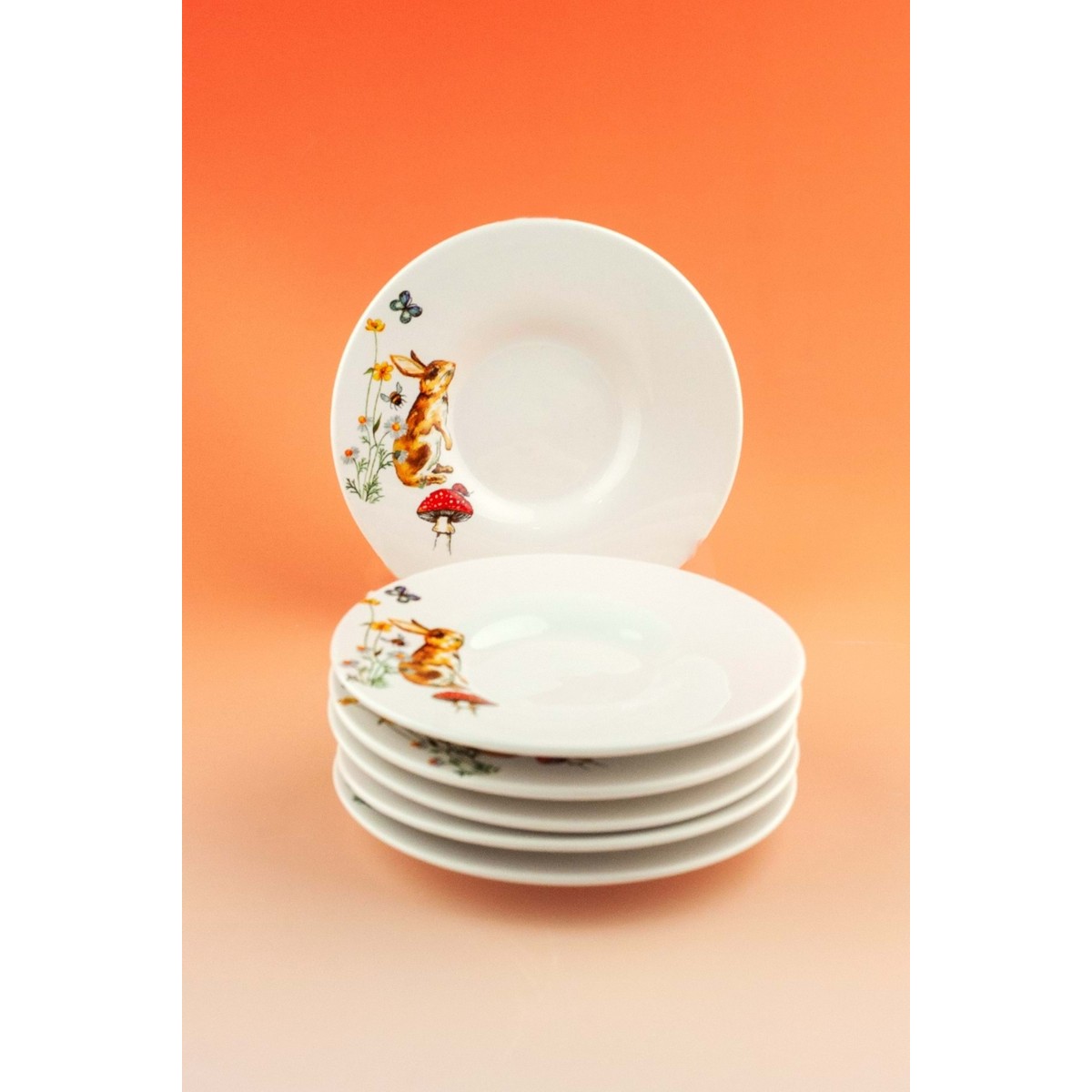 Bursa Porselen Dekor Tavşan 6 Adet Porselen Çay Tabağı
