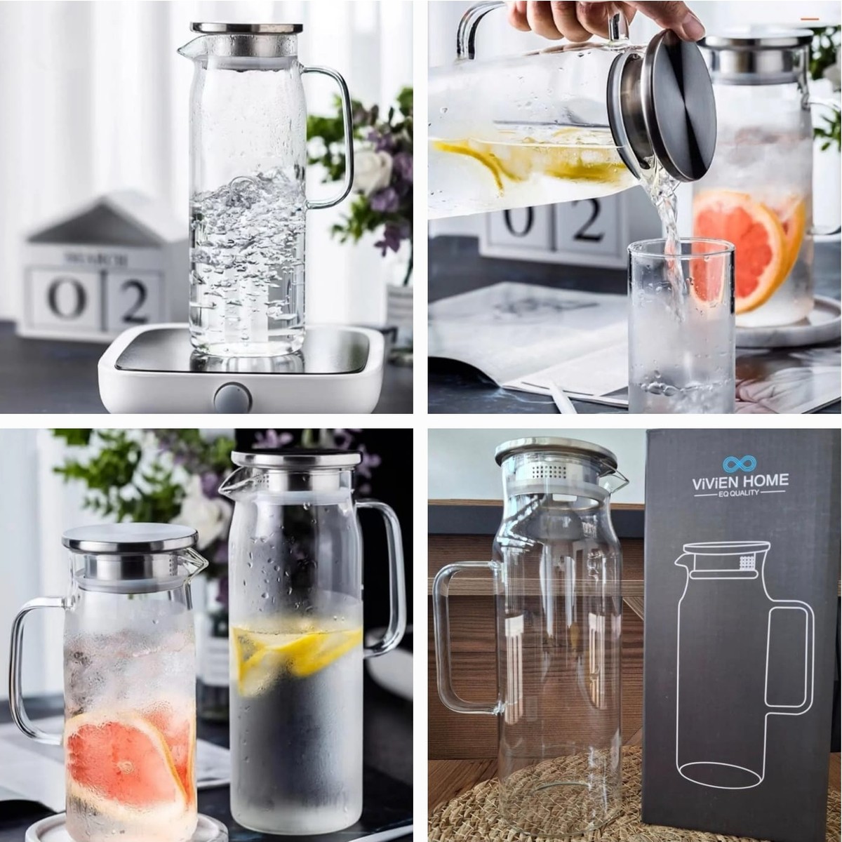 Carat FZ16 Cam Sürahi 2 Litre Çelik Süzgeçli Kapaklı