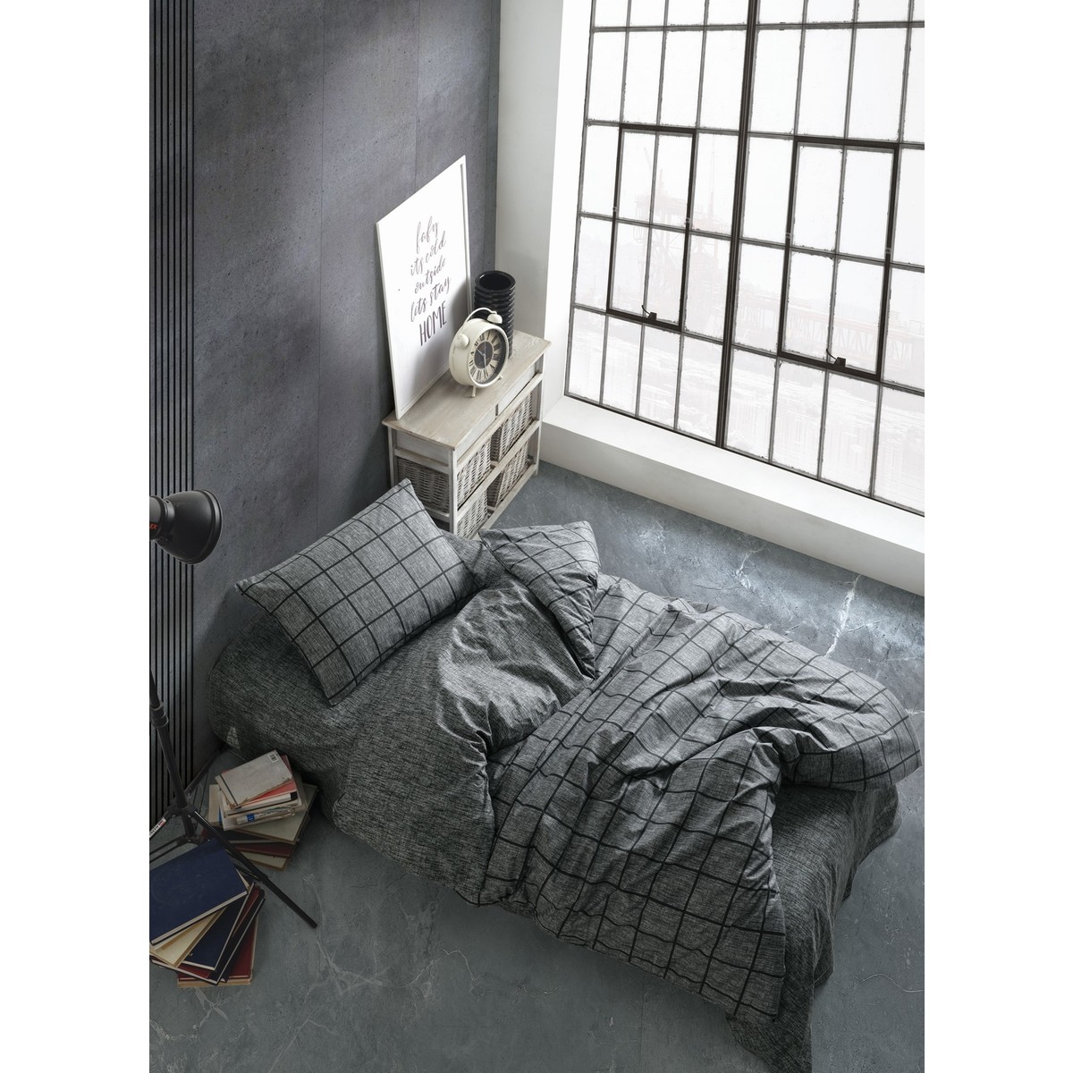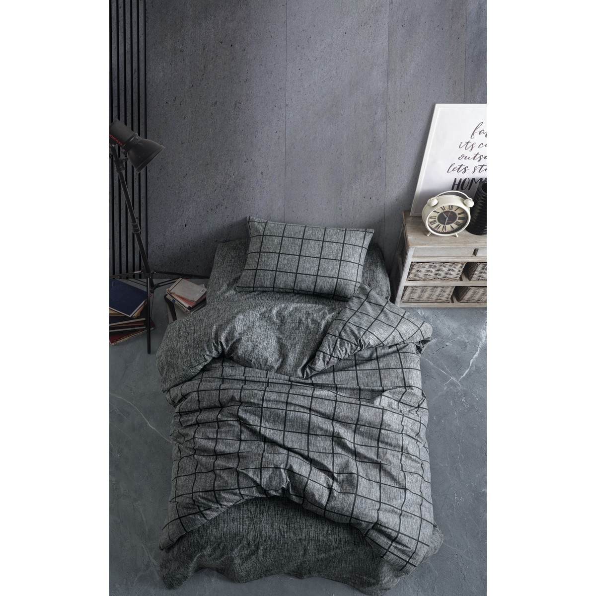 Casa Carina Kare Siyah Ranforce Lastikli Çarşaflı Tek Kişilik Nevresim Takımı