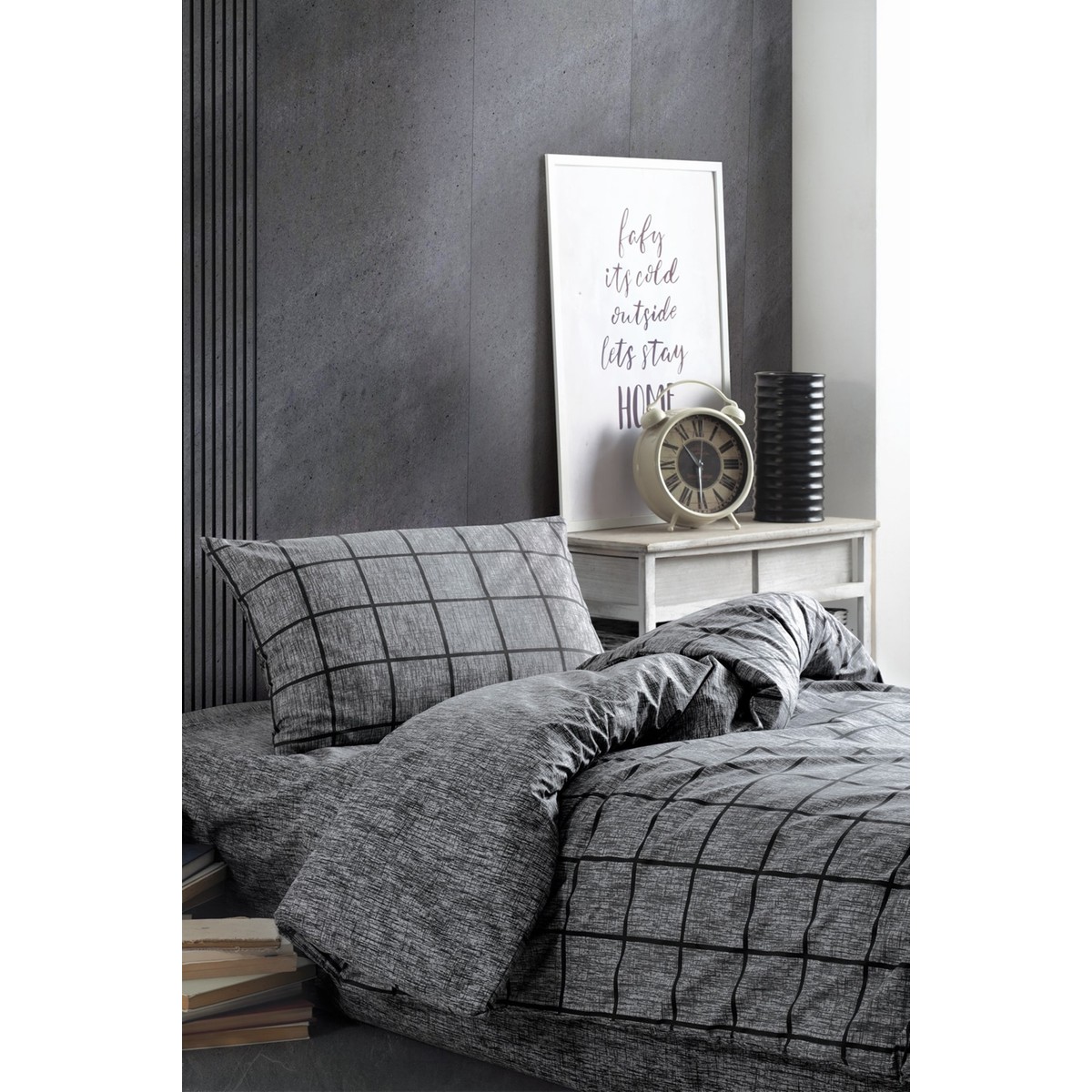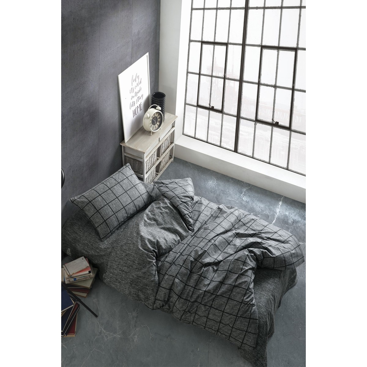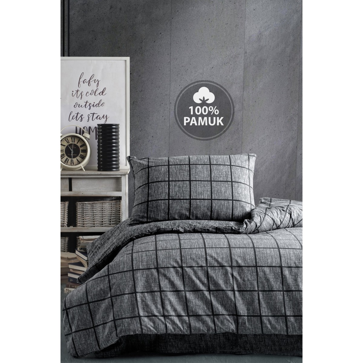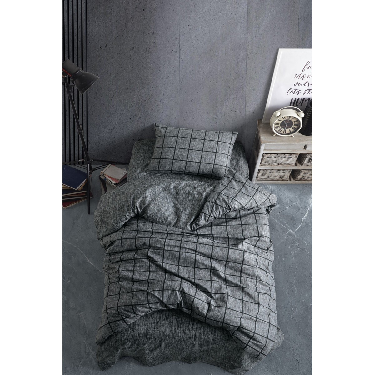 Ranforce Tek Kişilik Lastikli Çarşaflı Nevresim Takımı Kare Siyah