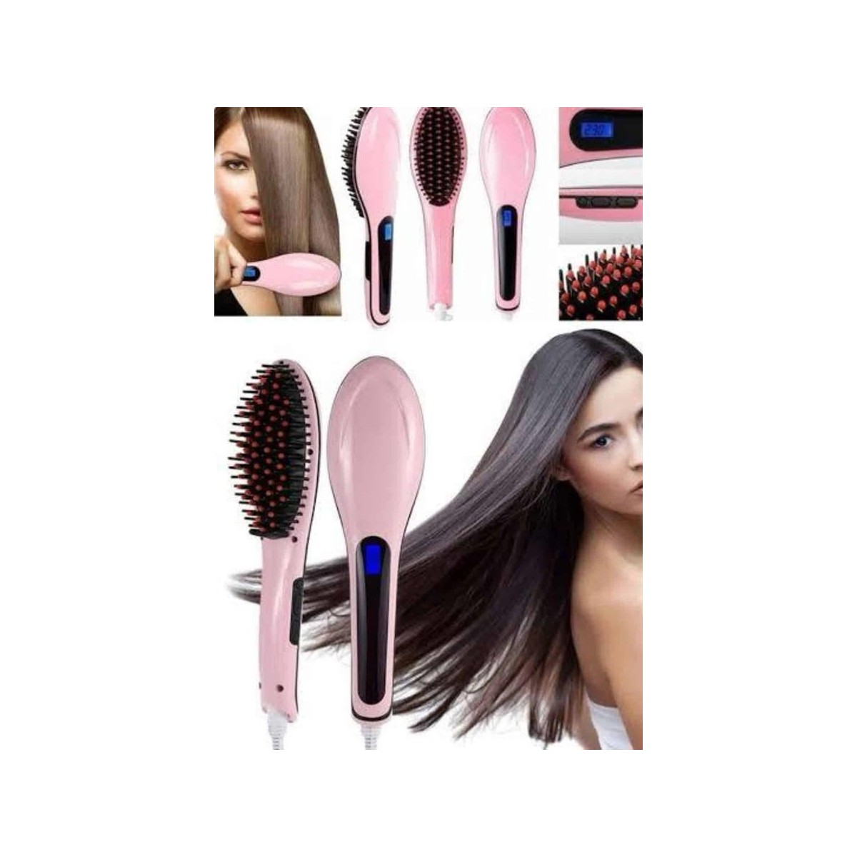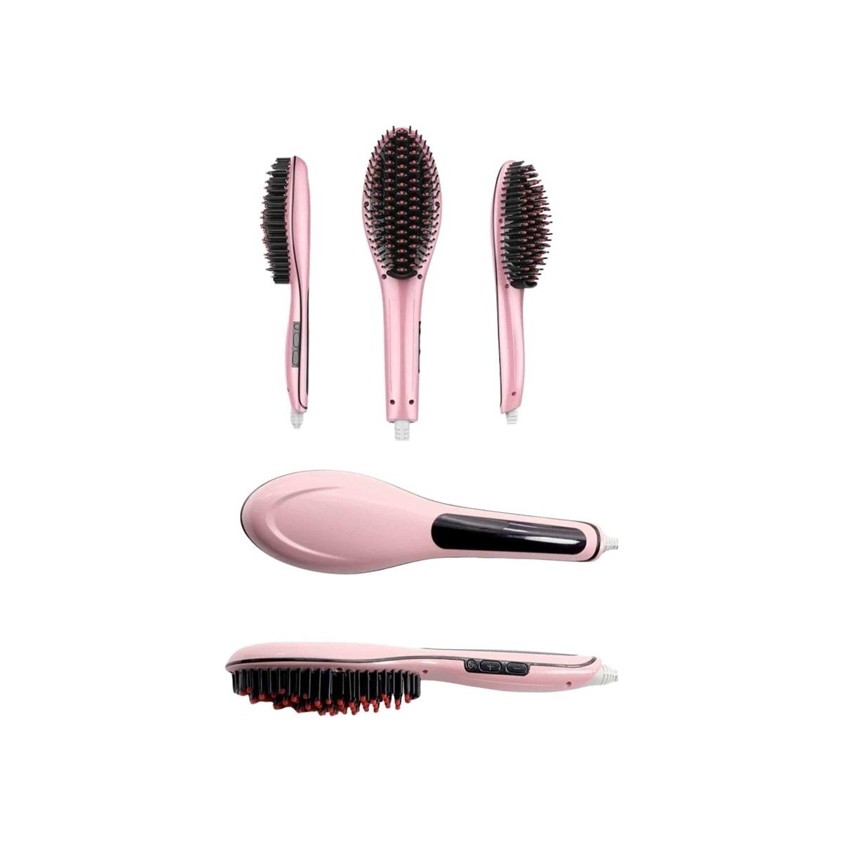 Elektrikli Saç Düzleştirici Tarak Saç Düzleştirici Fırça Sıkı Dişli Pembe