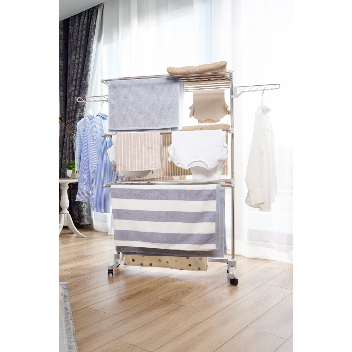 Çok kullanışlı, raflarının yüksekliği ayarlanabiliyor, tekerlekleri kolayca hareket ediyor, yandaki askılıklarına bayıldım. Tek dikkat edilmesi gereken şey çamaşırları dengeli yerleştirmek. Kesinlikle tavsiye ediyorum.