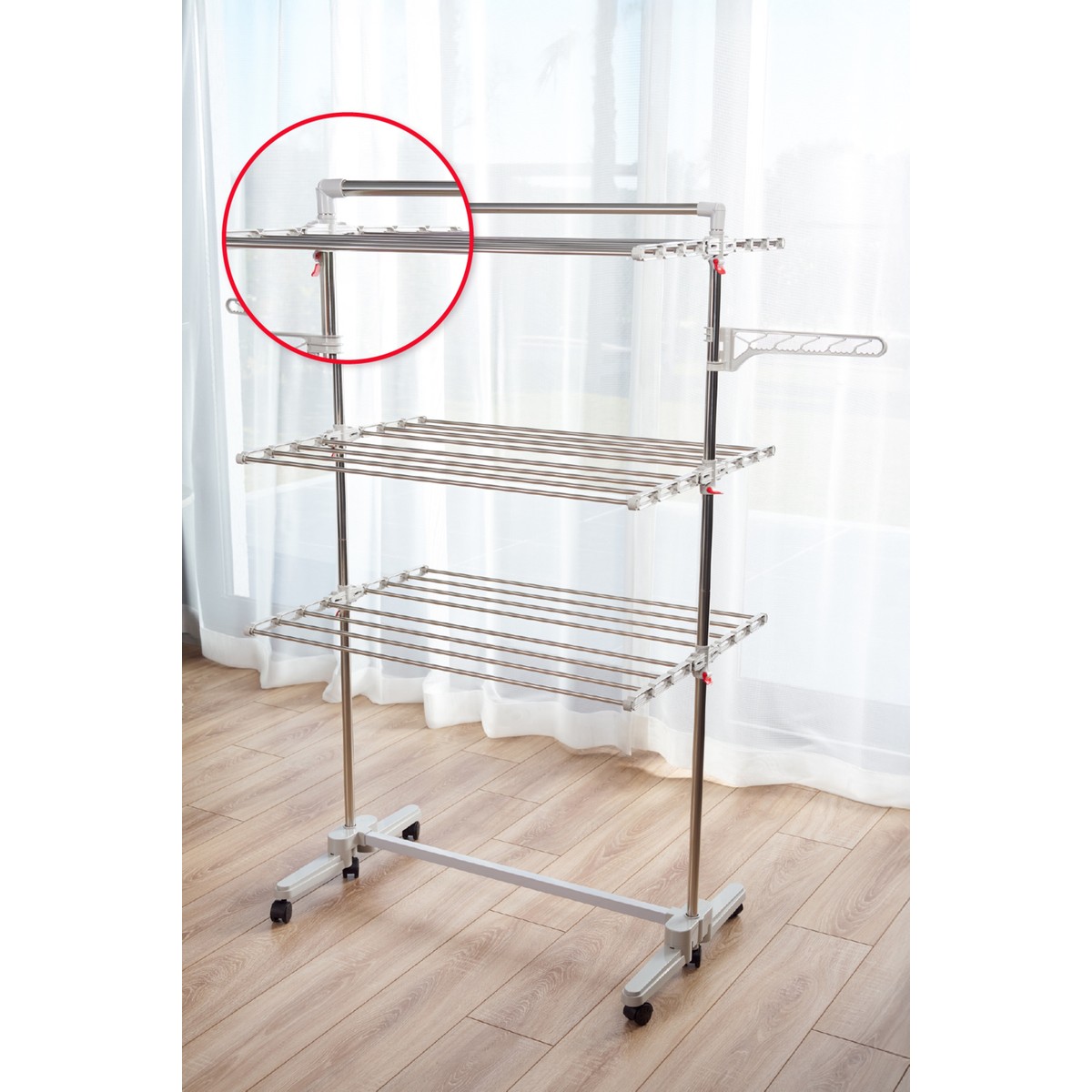 – Üst bar sayesinde kilim, battaniye, yorgan gibi ağır ve büyük çamaşırlarınızı kurutabilmenize imkan tanır.