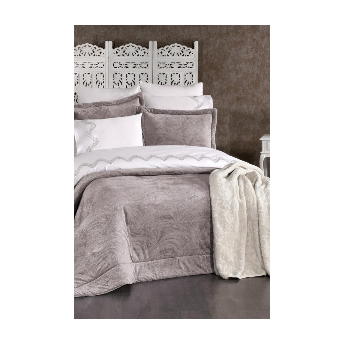 Çeyiz Diyarı Emila 10 Parça Battaniyeli Çeyiz Seti Gri