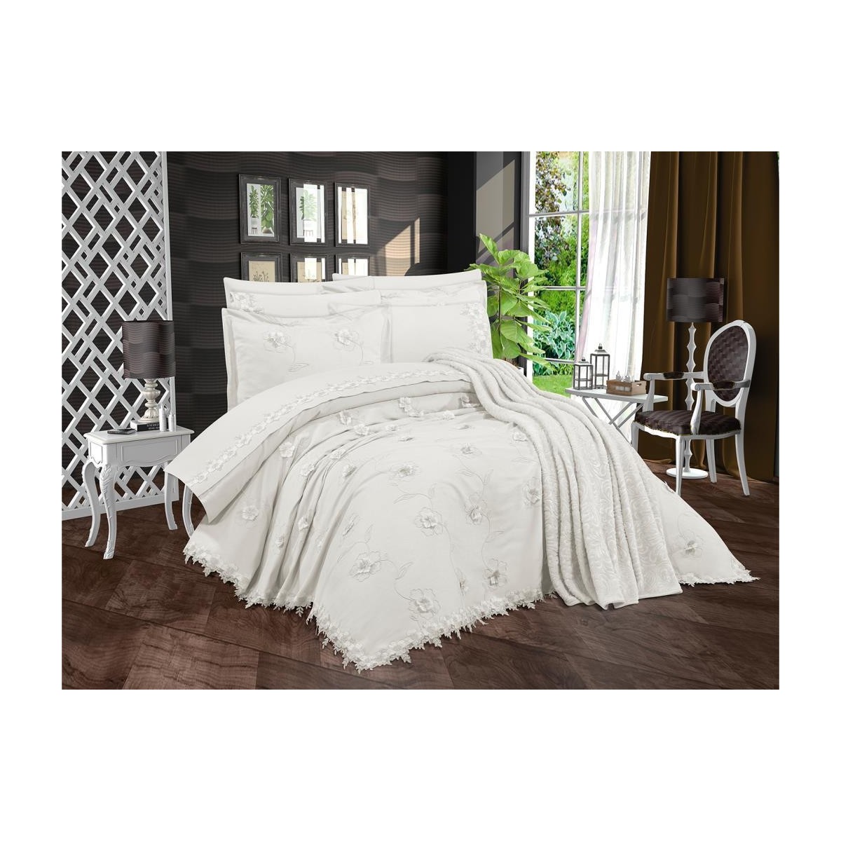 Çeyiz Diyarı Pamukkale Şönil Nakışlı 10 Parça Gelin Seti Krem